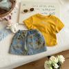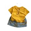 Compra Traje de Verano Crema 2025 Nuevo Moda Bebé Jardín de Niños Camiseta de Lazo de Moda Falda de Mezclilla Conjunto de Dos Piezas Moderno al por mayor en Joom.pro