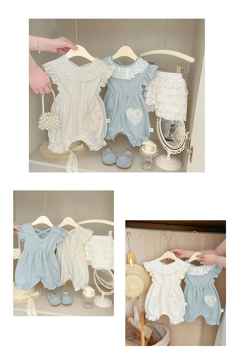 Ropa Delgada de Verano para Bebé Estilo Occidental Cuello de Muñeca Dulce Jetsuit Edad Luna Pequeña Lindo Traje de Luna Llena