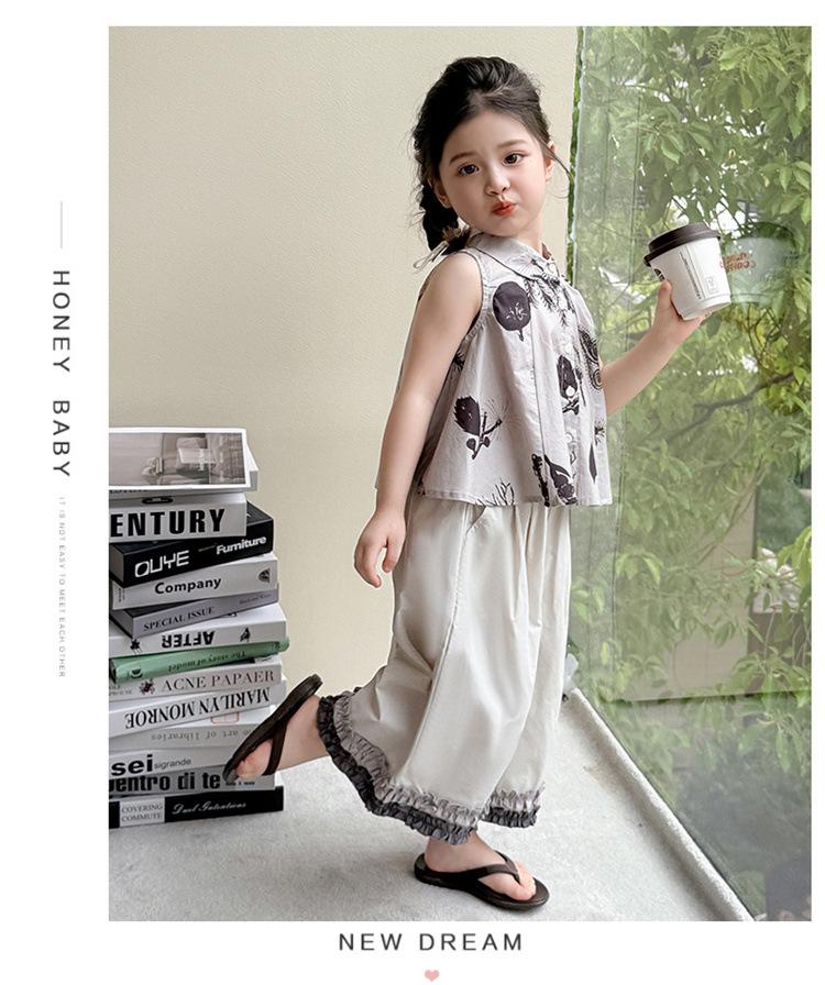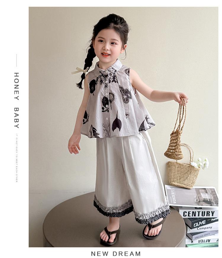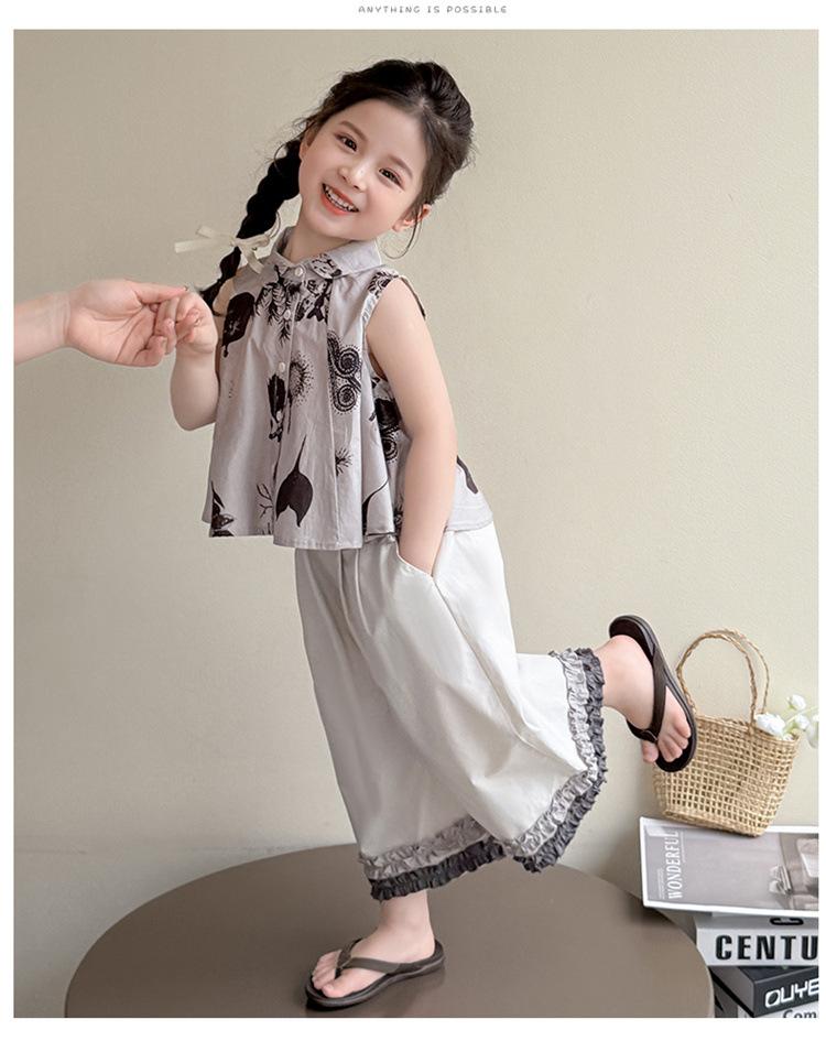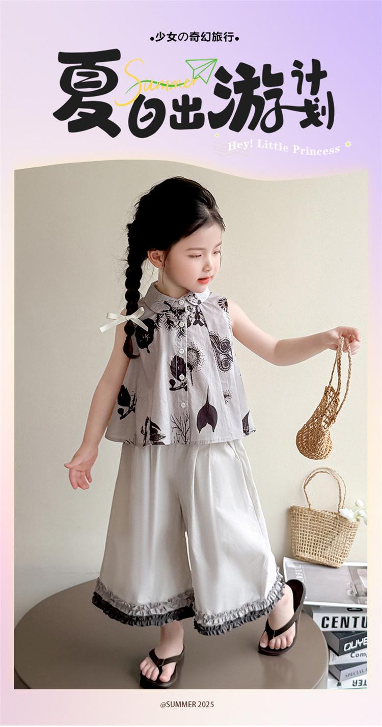 Traje de Camisa Chaleco para Niñas 2025 Verano Nueva Moda Conjunto de Dos Piezas Moderno para Niña Ropa de Tendencia para Niños Pequeños y Medianos