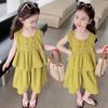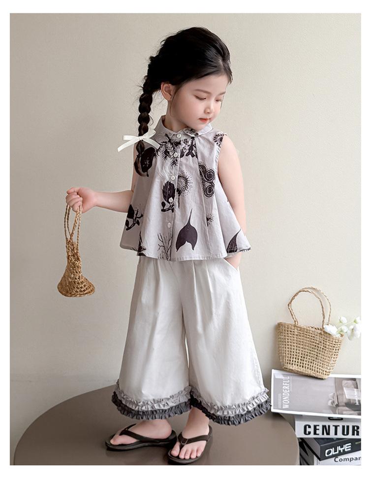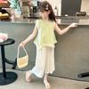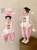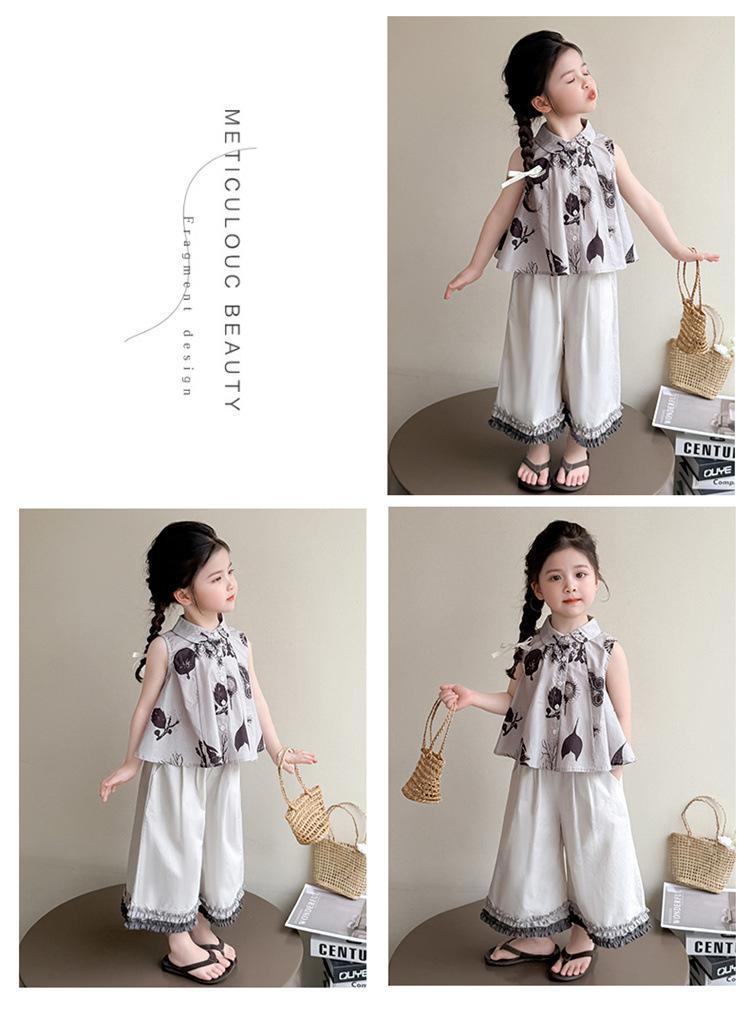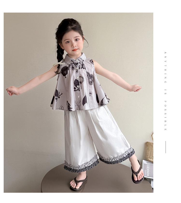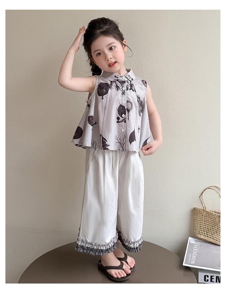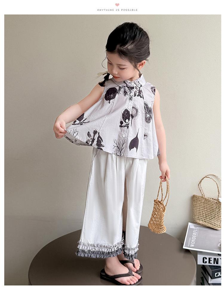 Traje de Camisa Chaleco para Niñas 2025 Verano Nueva Moda Conjunto de Dos Piezas Moderno para Niña Ropa de Tendencia para Niños Pequeños y Medianos