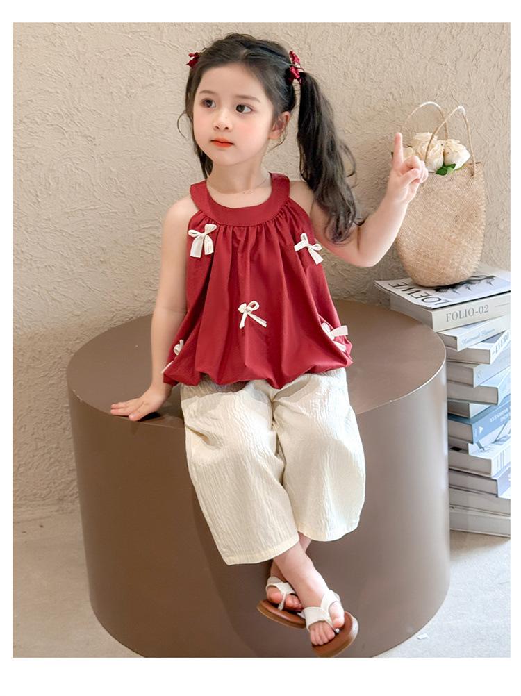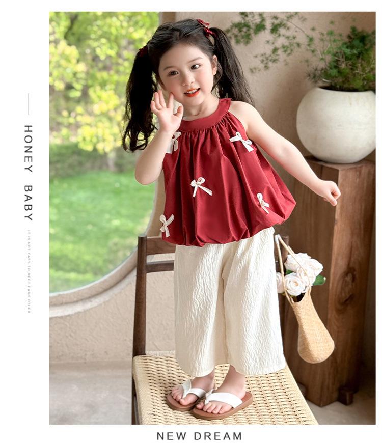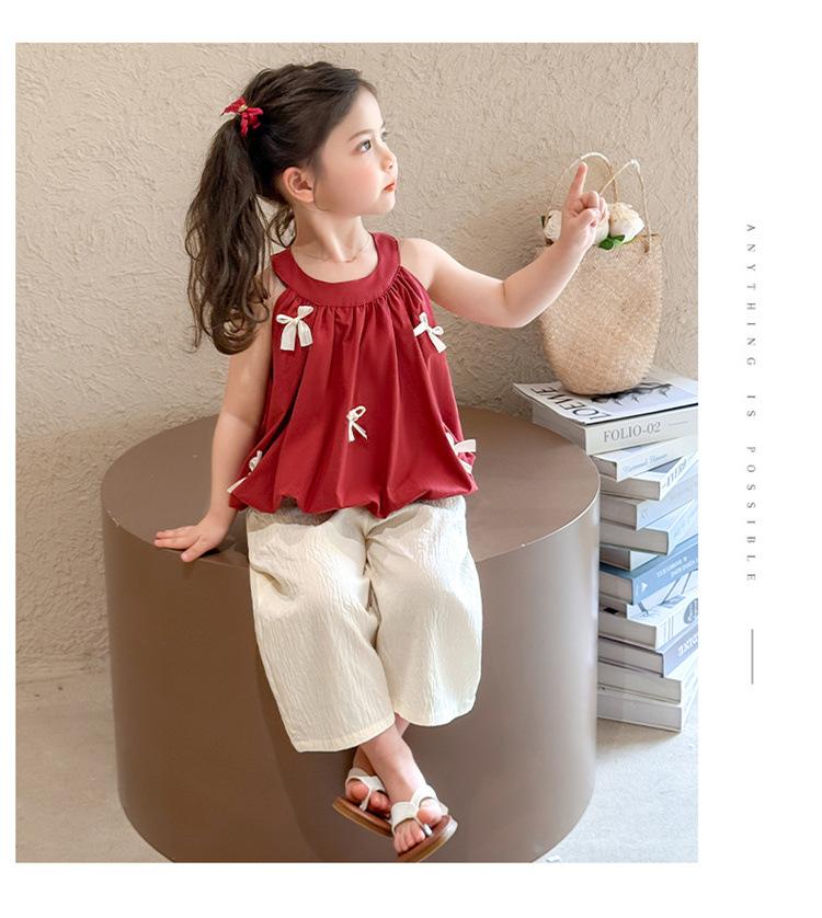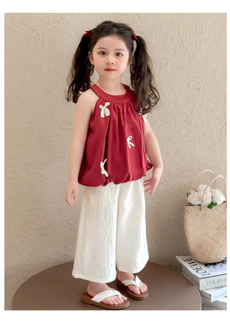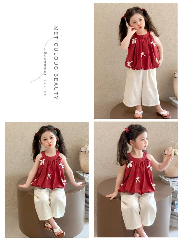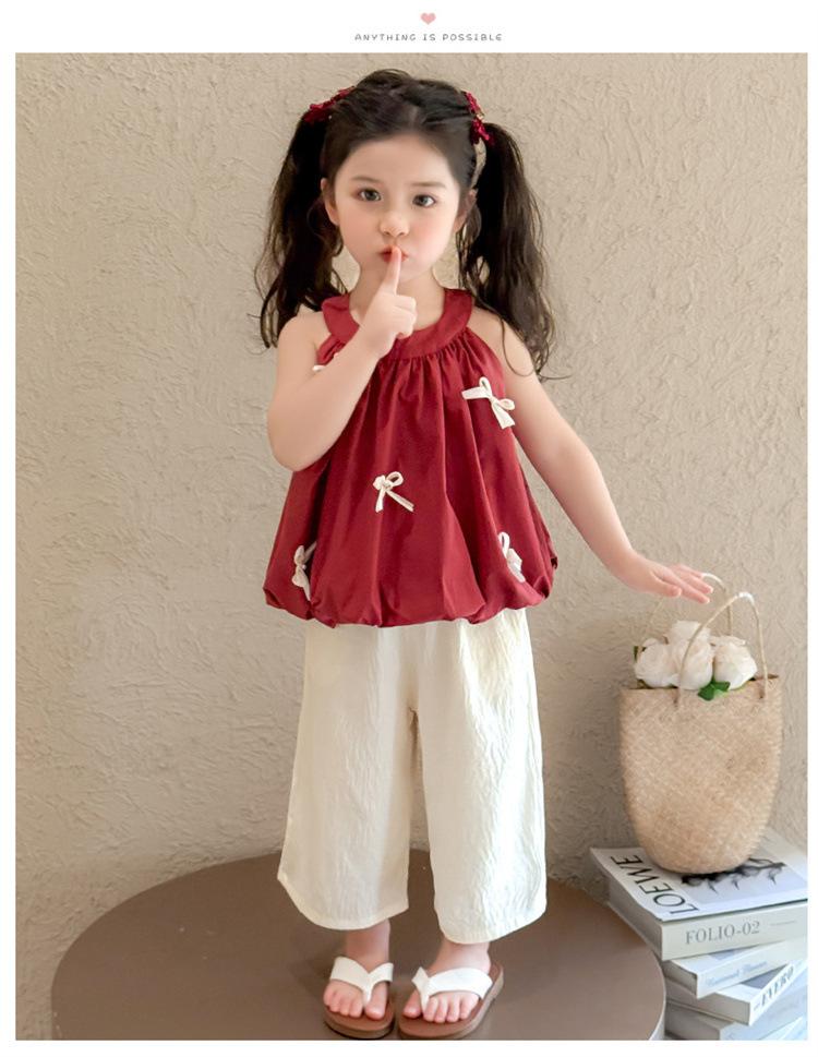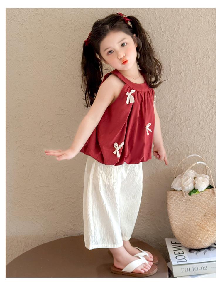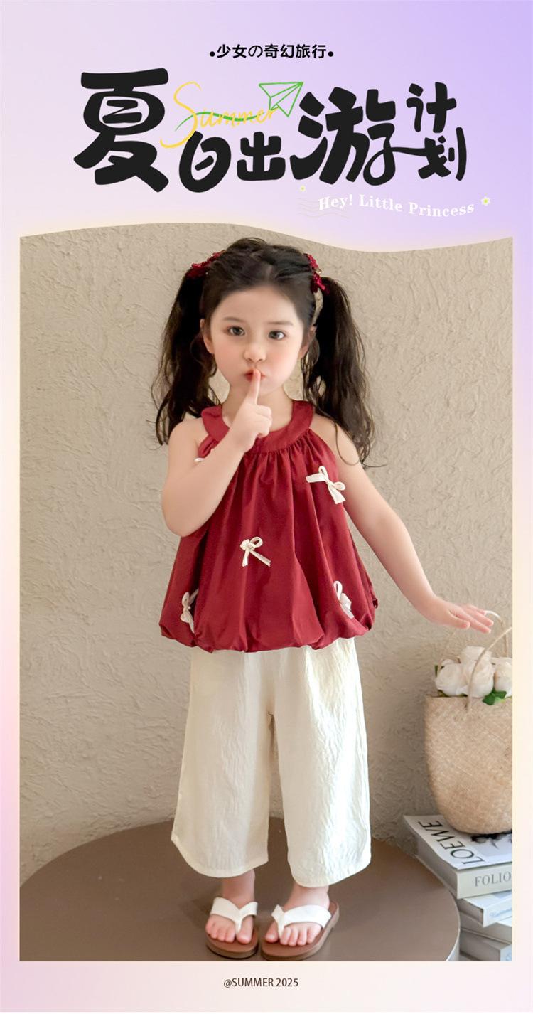Chaleco para Niñas Traje Lazo Flor de Capullo 2025 Verano Nueva Moda Niña Elegante Conjunto de Dos Piezas para Niños