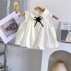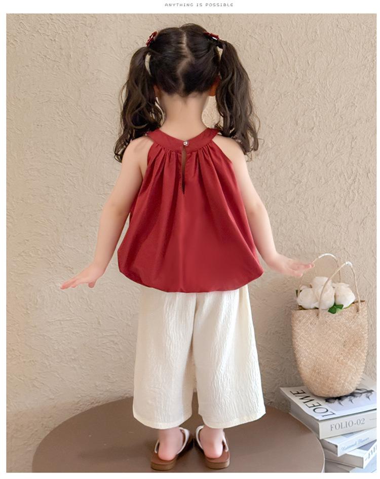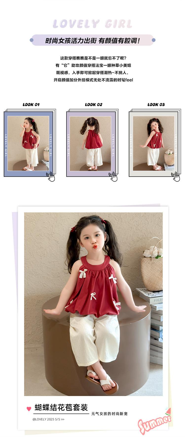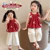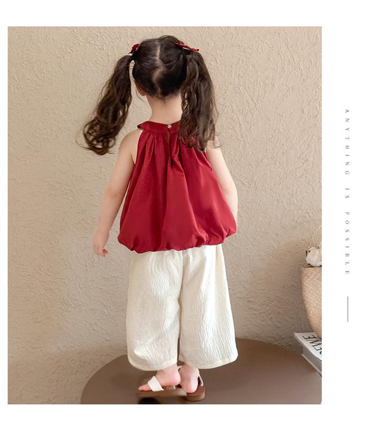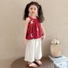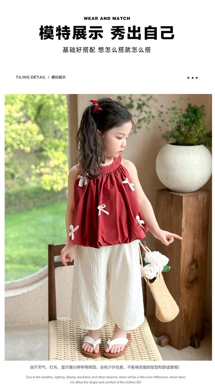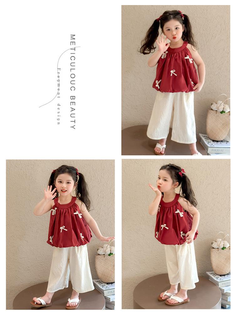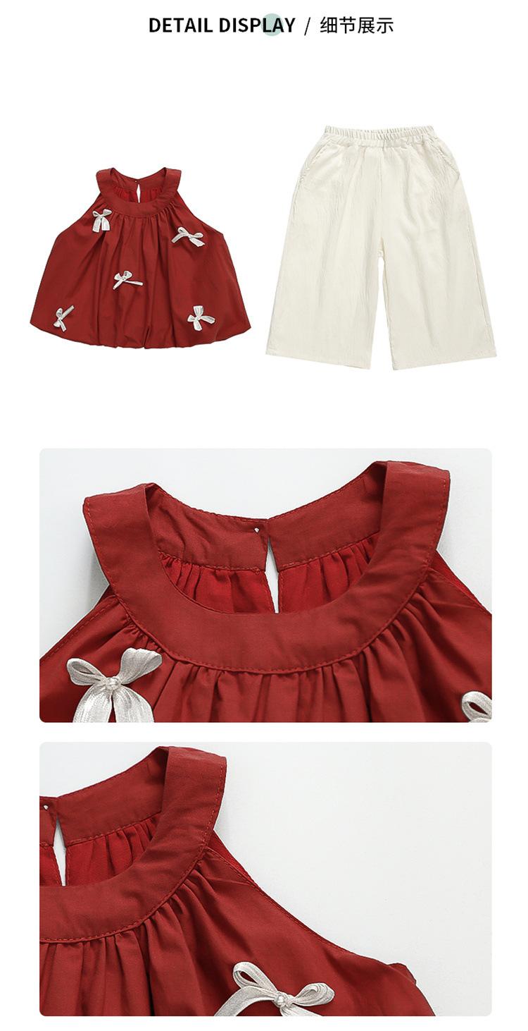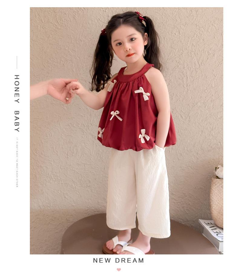 Chaleco para Niñas Traje Lazo Flor de Capullo 2025 Verano Nueva Moda Niña Elegante Conjunto de Dos Piezas para Niños