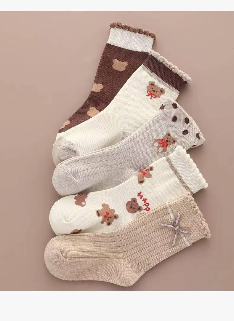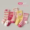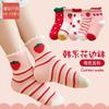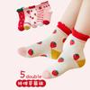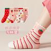Calcetines de Algodón para Niños Otoño 2025 Lindo Estampado de Fresa de Dibujos Animados Calcetines de Media Caña para Niños y Niñas Calcetines Transpirables Absorbentes de Sudor