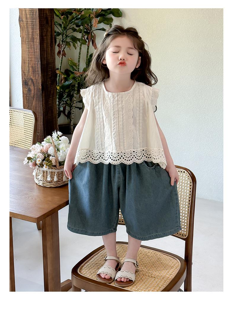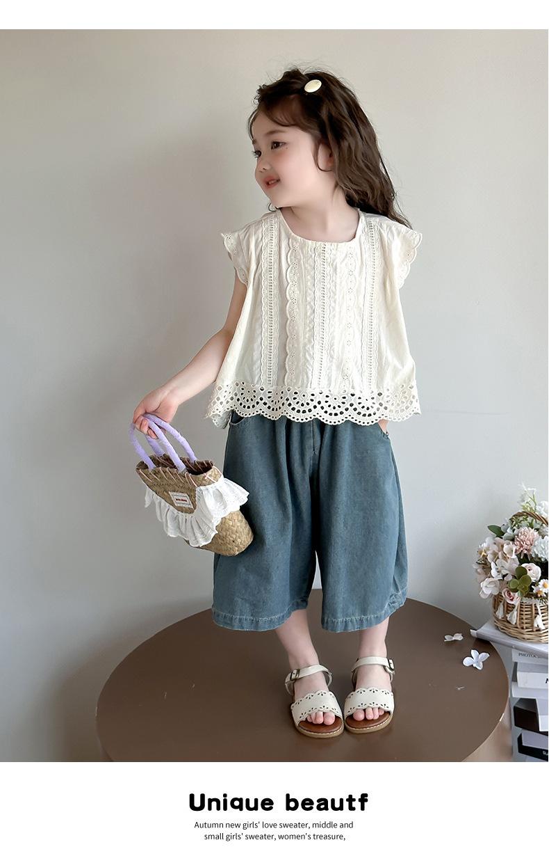 Traje de verano para niñas 2025 Nuevo estilo coreano Top chaleco sin mangas Pantalones anchos sueltos