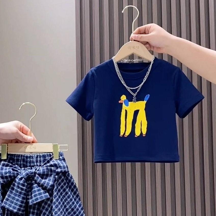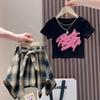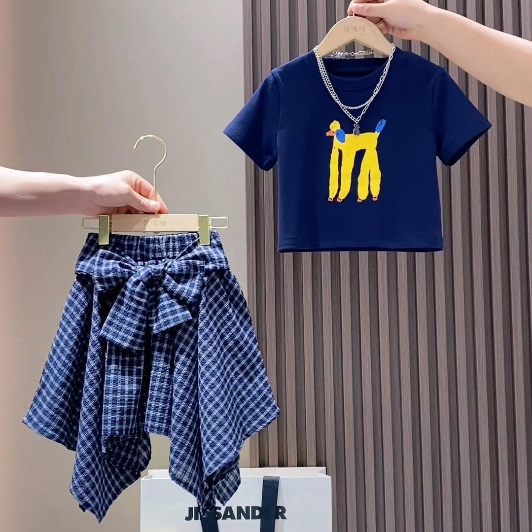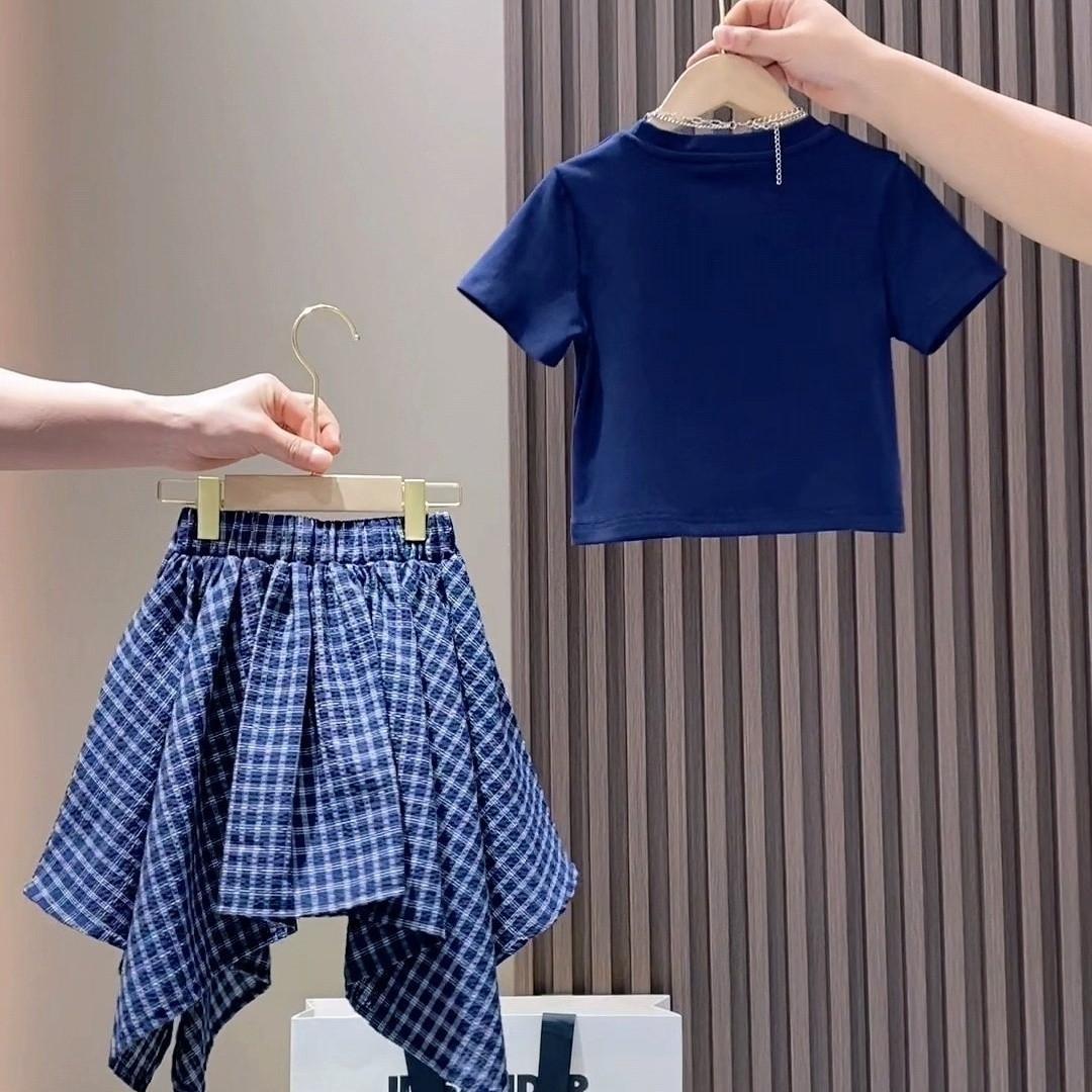 Traje para Niña Estilo Verano 2025 Nueva Moda Niña Verano Manga Corta Falda Asimétrica para Niños Conjunto de Dos Piezas Moderno