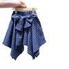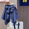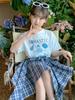 Long-legged dog short sleeves + blue plaid culottes