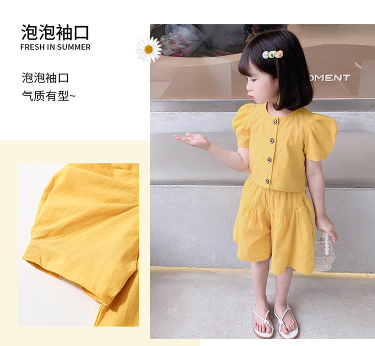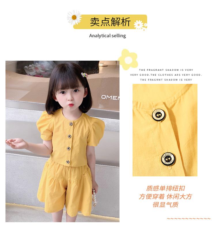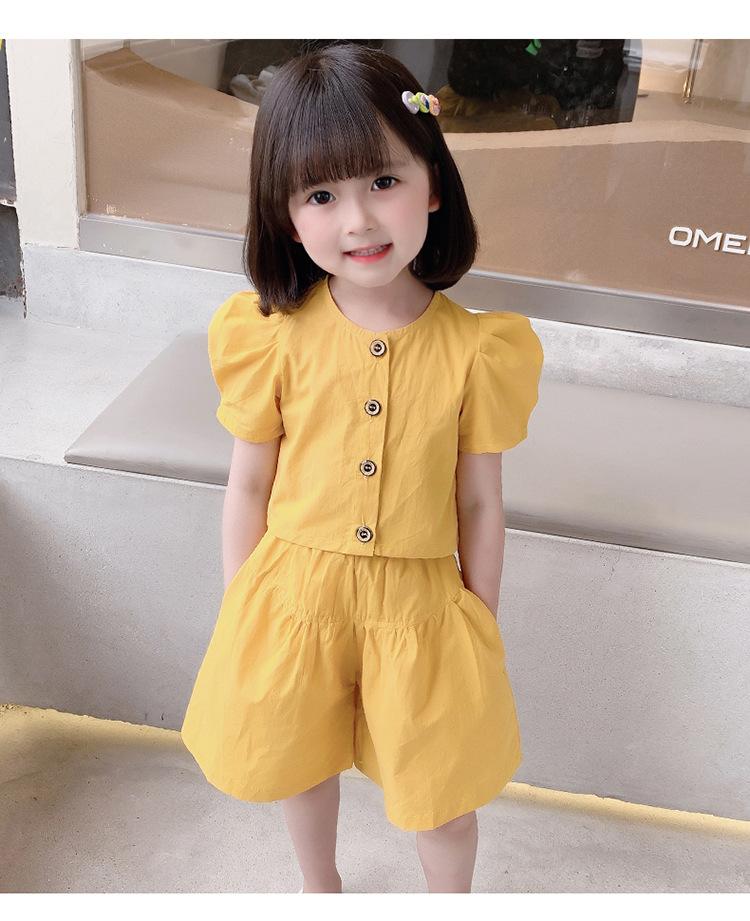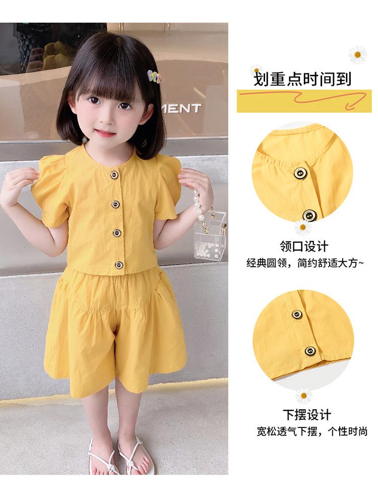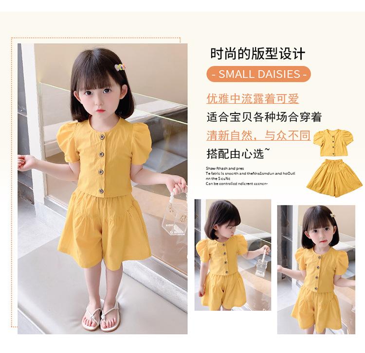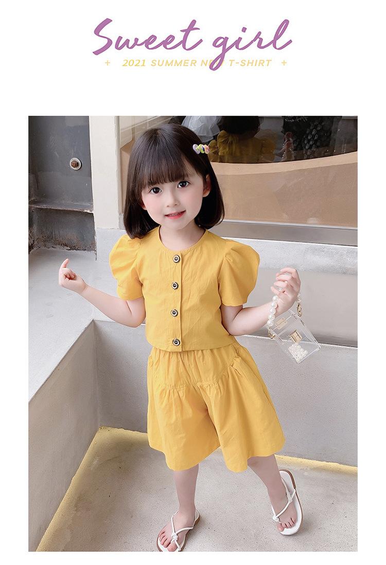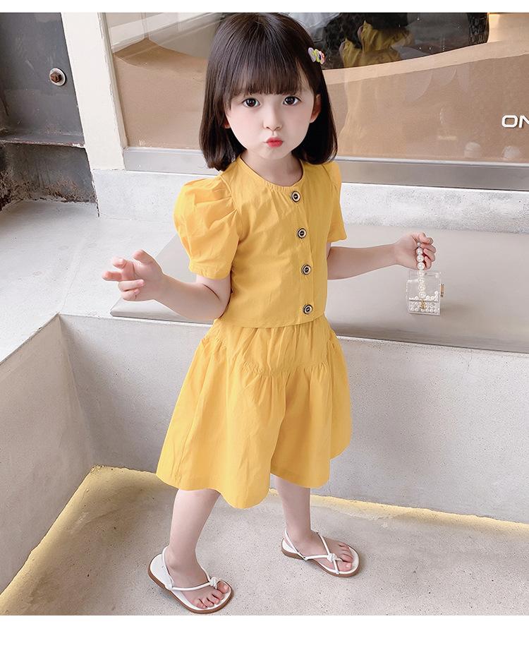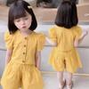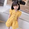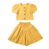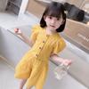 Pantalones amarillos de pierna ancha para niña Traje casual 2025 Verano Nueva moda Niña Elegante Conjunto de dos piezas para niños