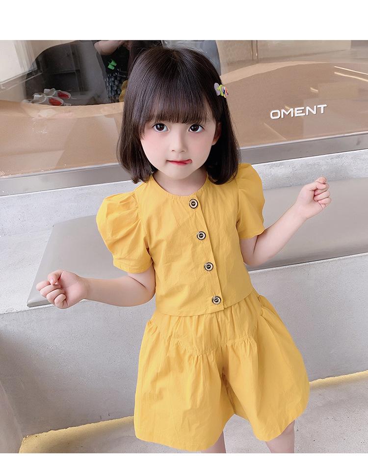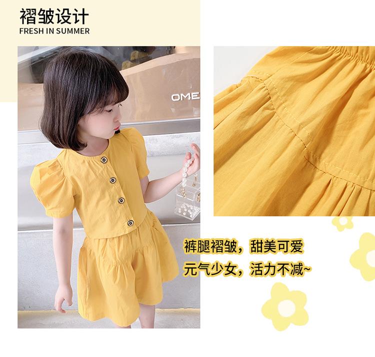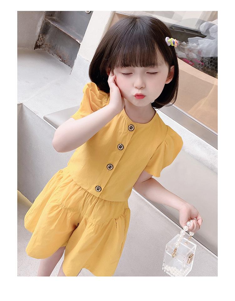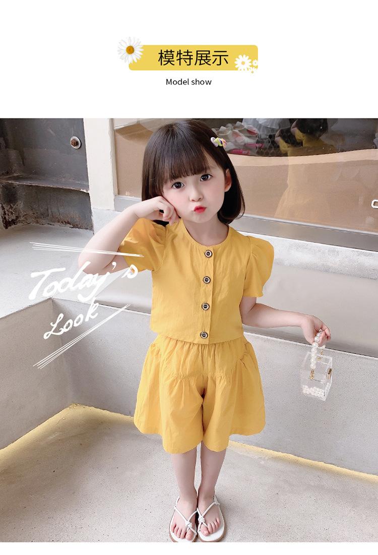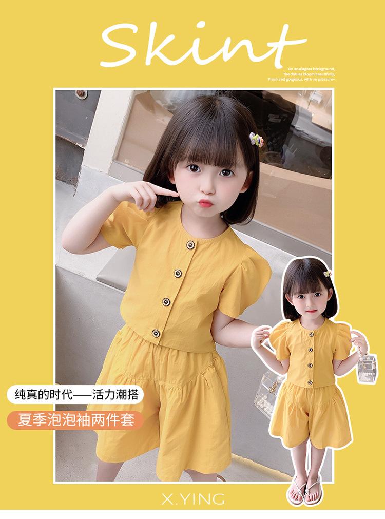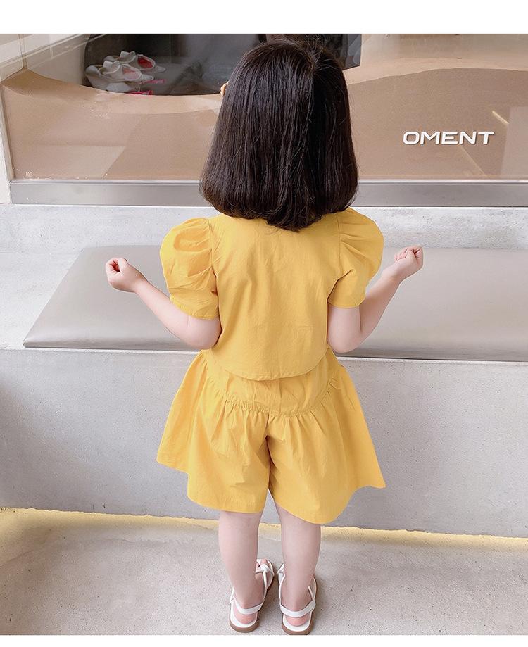 Pantalones amarillos de pierna ancha para niña Traje casual 2025 Verano Nueva moda Niña Elegante Conjunto de dos piezas para niños