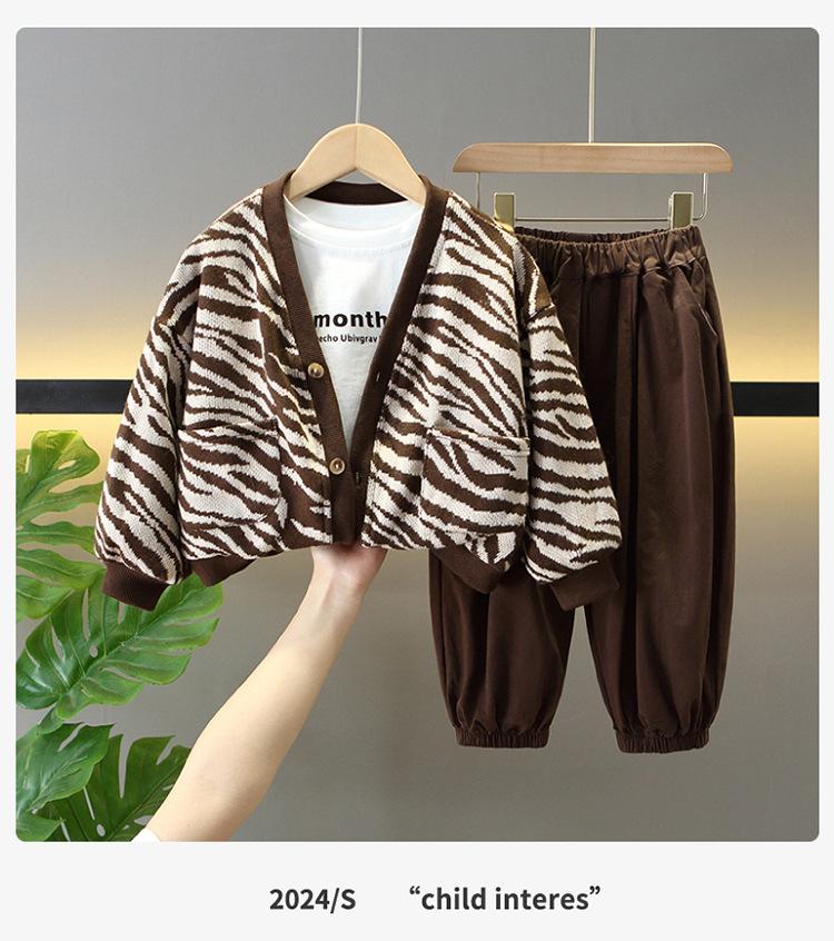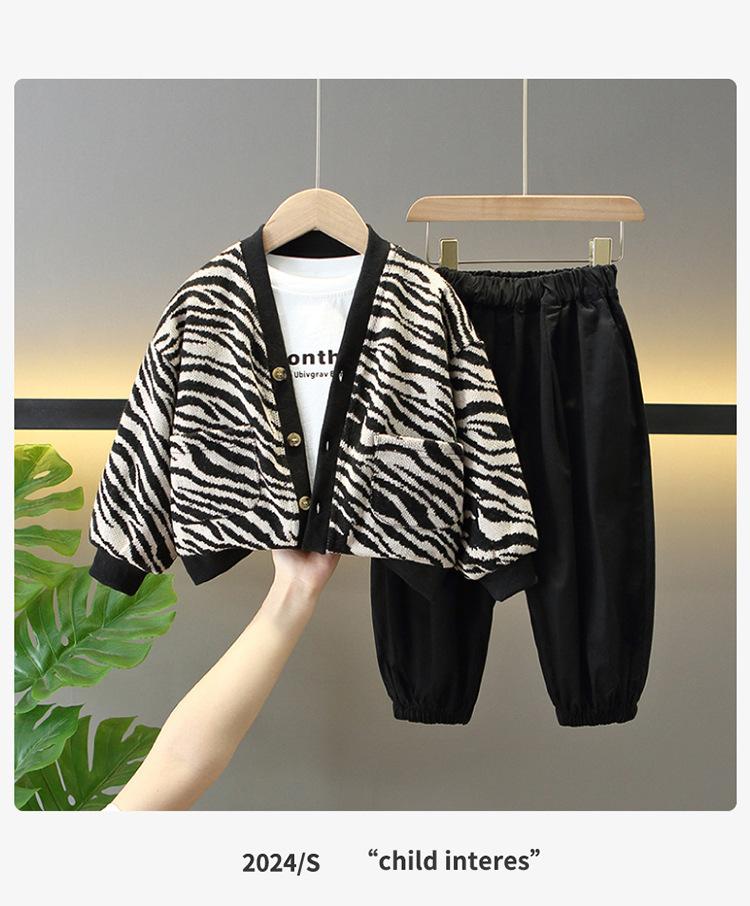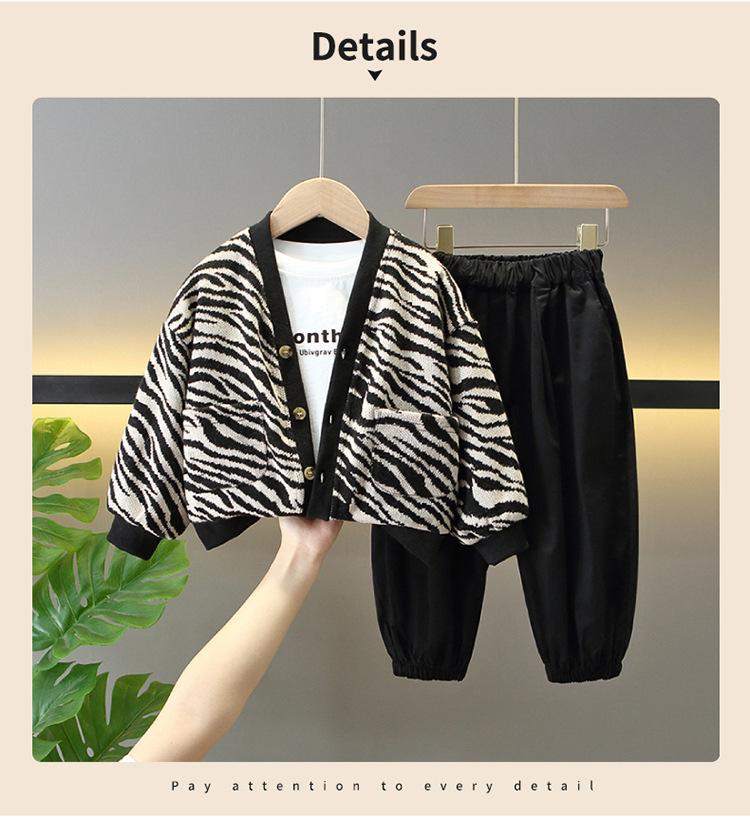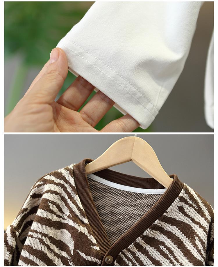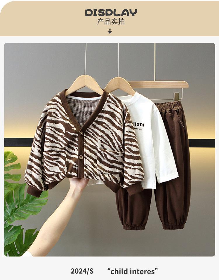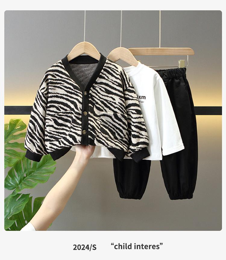 Conjunto de Tres Piezas de Primavera para Niños Suéter Cárdigan Chaqueta Elegante Traje de Moda de Primavera y Otoño Estilo Coreano para Bebés