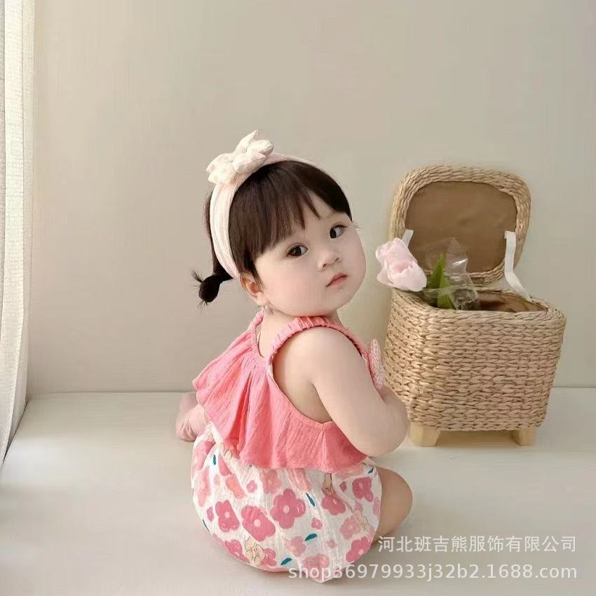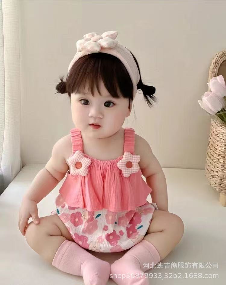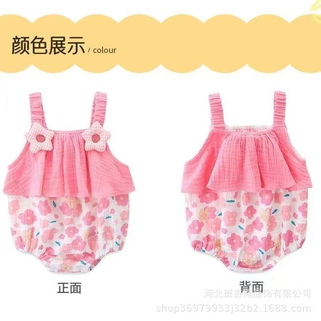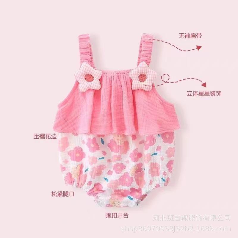 Mameluco de Verano sin Mangas para Niñas 2025 Recién Nacido Algodón Puro Mono Infantil Tirantes Triángulo Estilo Princesa