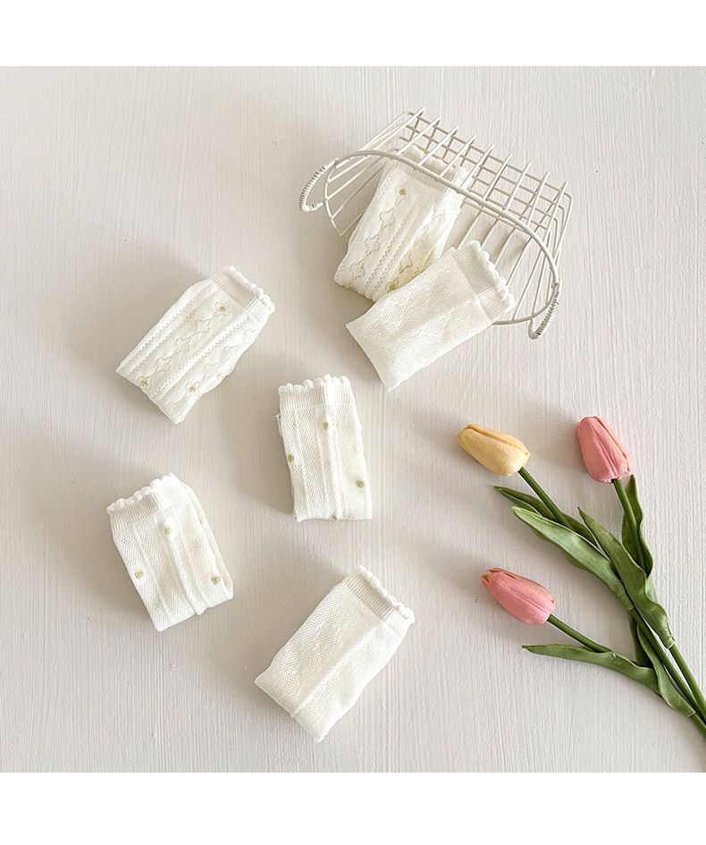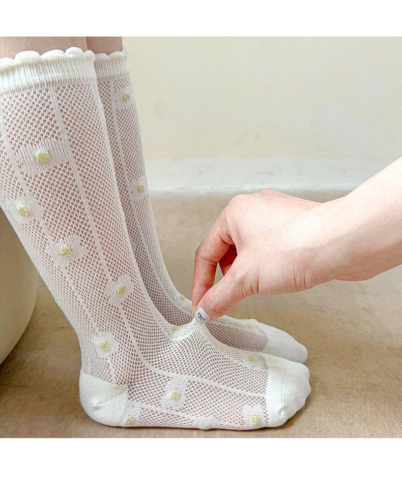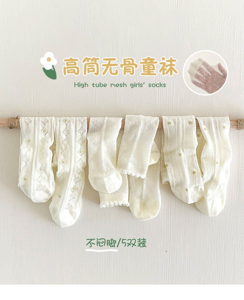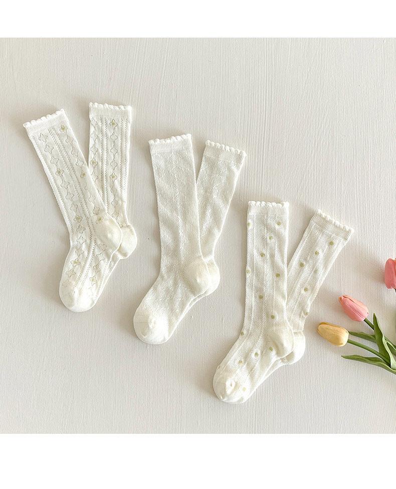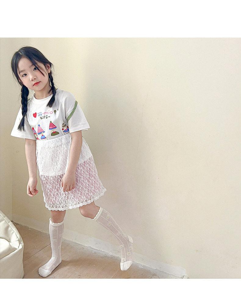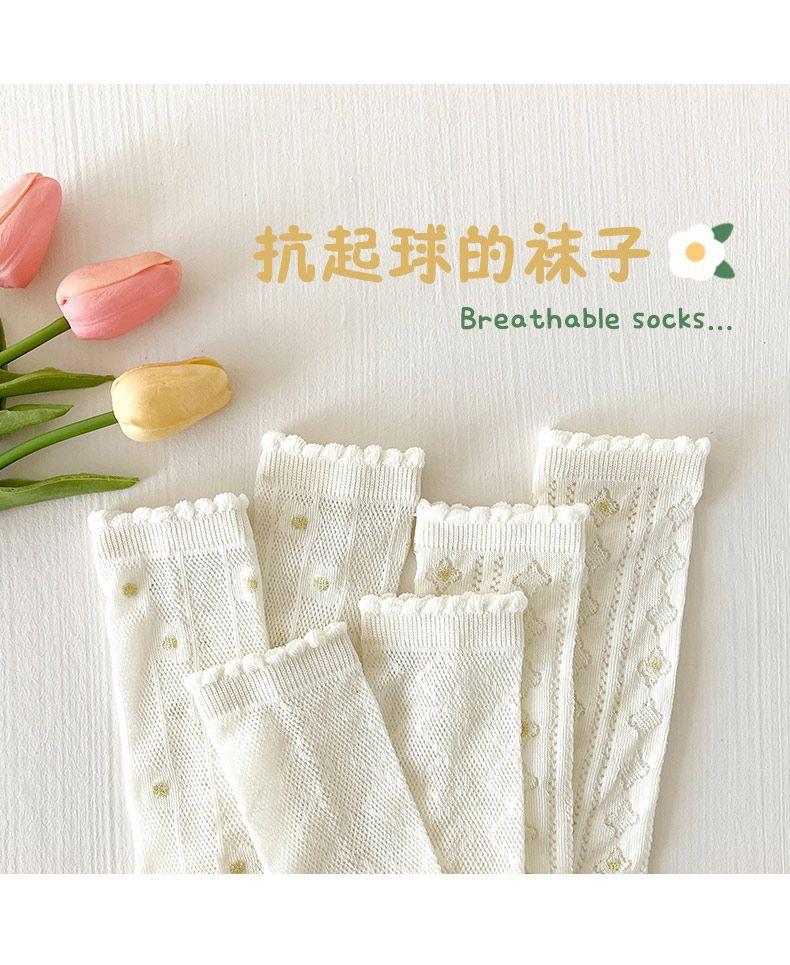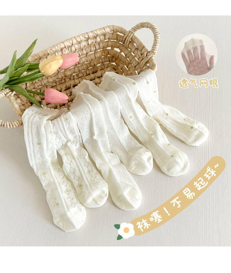 Calcetines para Niñas Primavera y Verano Malla Sin Costuras Finos Blancos Calcetines de Princesa Estudiantes Niños Medianos y Mayores Calcetines hasta la Mitad de la Pantorrilla Dibujos Animados de Moda