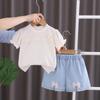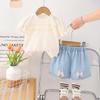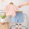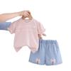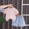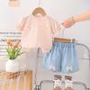 Traje de Verano de Manga Corta para Niñas 2025 Nuevo Estilo Coreano Ropa de Moda Infantil Conjunto de Dos Piezas de Manga Corta y Shorts para Bebé