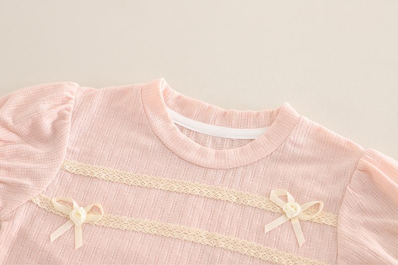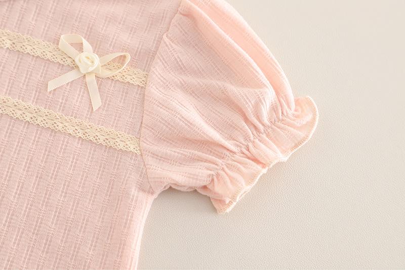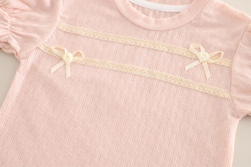 Pink double lace short-sleeved two-piece set, Off-white double lace short-sleeved two-piece set