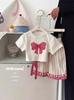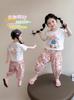 Traje de Verano para Niñas Bebé de Manga Corta 2025 con Lazo Estilo Infantil Cuello Redondo Manga Corta Pantalón Traje Anti-Mosquitos