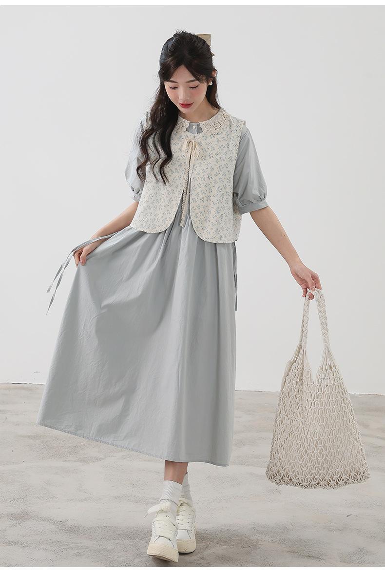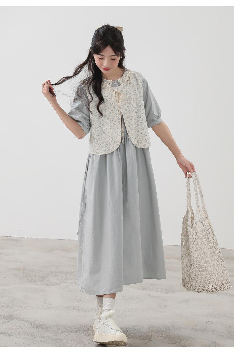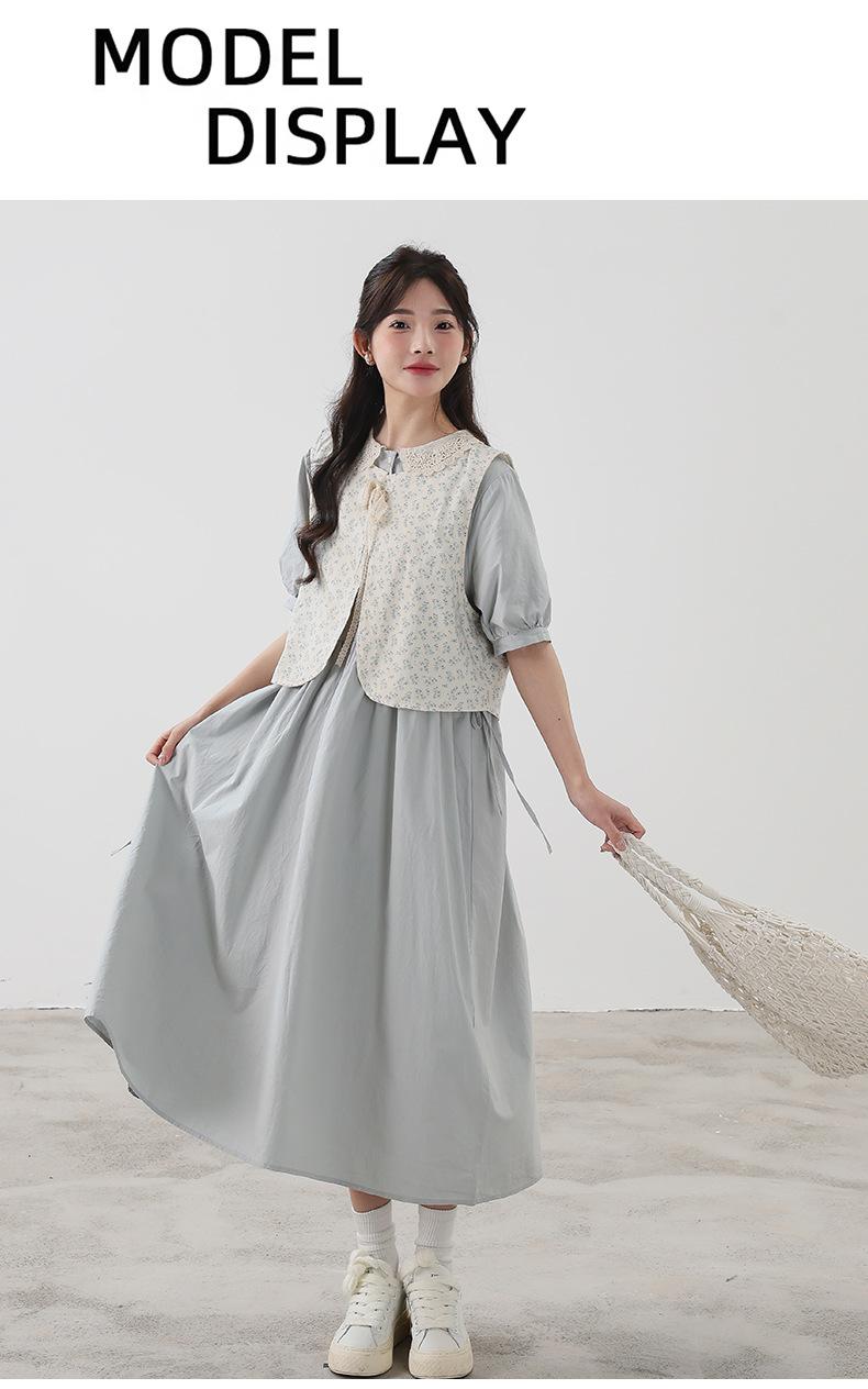 Vestido de niña Verano 2025 Nuevo Estilo Falda Súper Bonita de Niña de Secundaria Traje de Chaleco Floral de Niño Grande