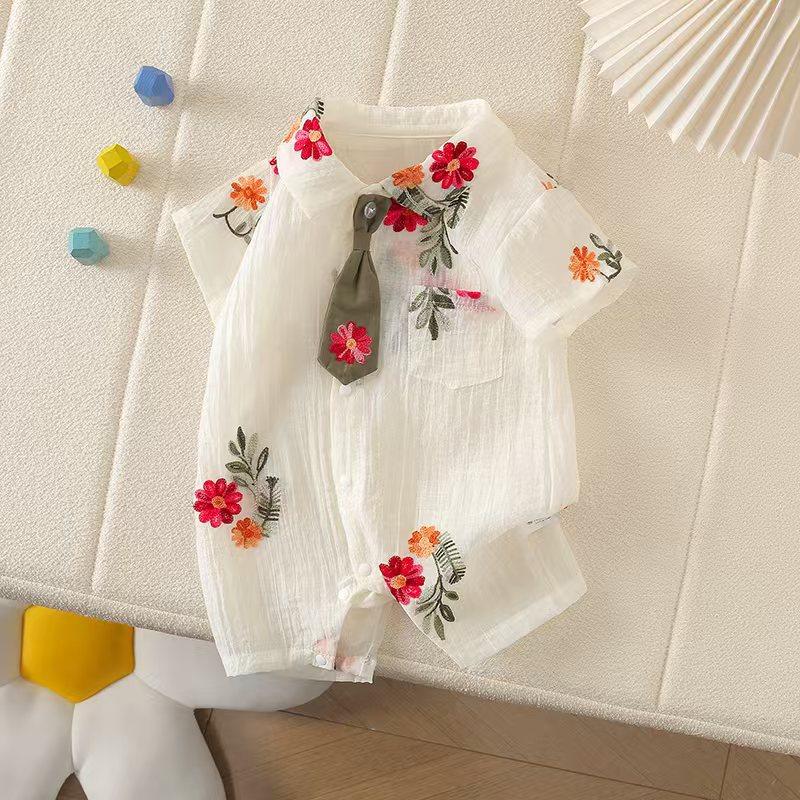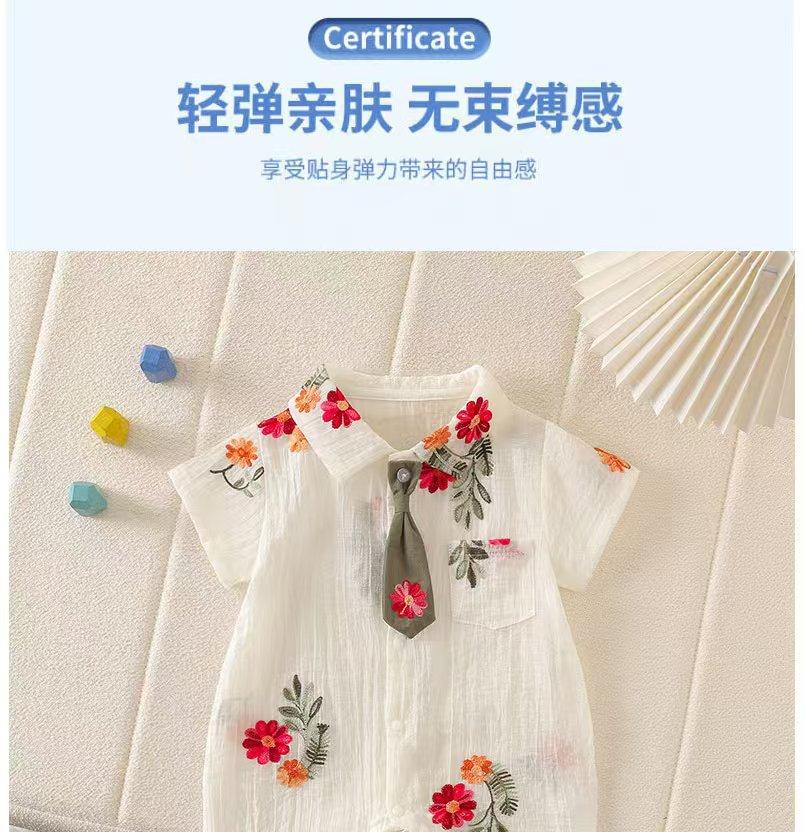 Ropa de Verano para Bebé Bebé Verano 2025 Nuevo Mameluco de Manga Corta Súper Lindo Estilo Occidental Traje Delgado de Verano