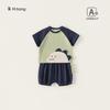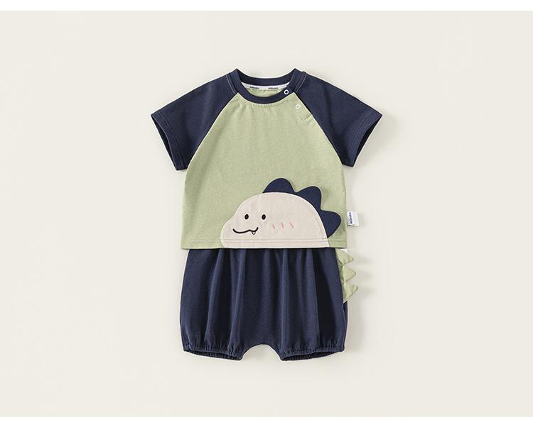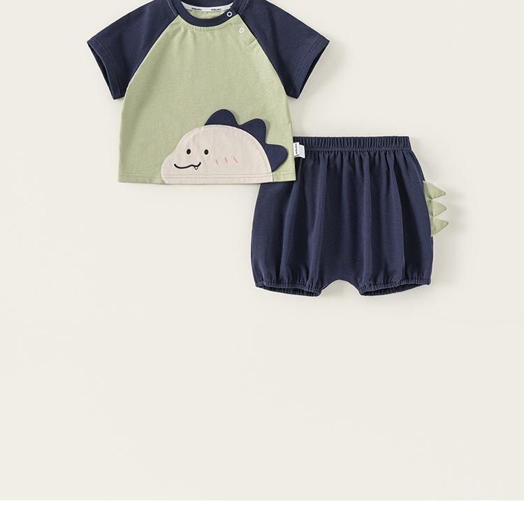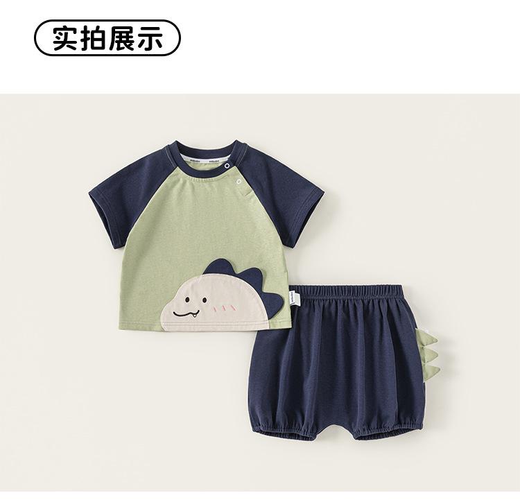 Bangxuan Verano Traje Casual de Manga Corta para Niños Camiseta de Manga Raglán de Cuello Redondo para Niños Shorts de Cocodrilo de Color Puro Conjunto de Dos Piezas