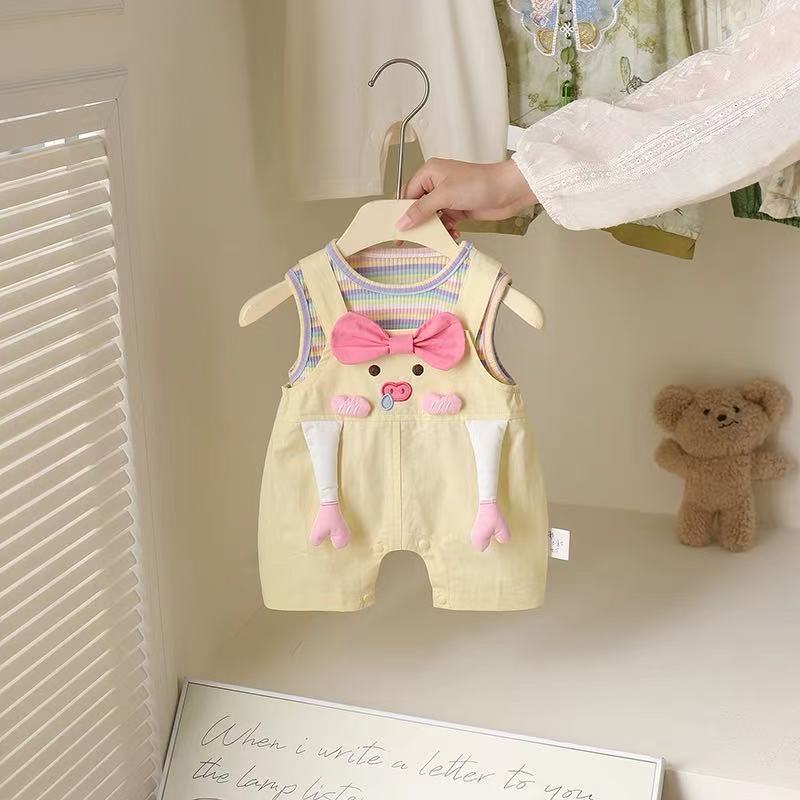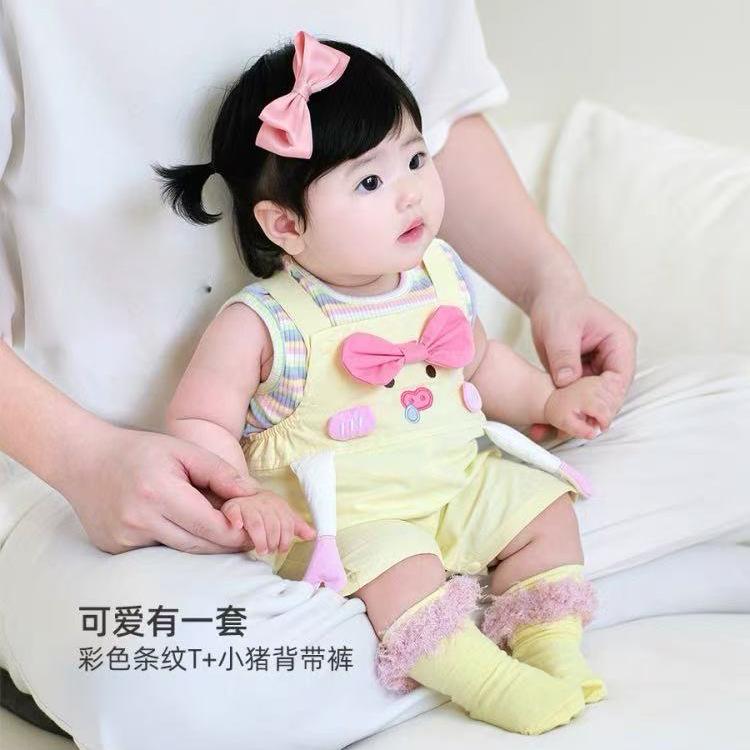 2025 Ropa para Bebé Gateando Ropa de Verano para Niños Mameluco de Manga Corta Traje Infantil Bebé Cerdo de Dibujos Animados Conjunto de Dos Piezas Moderno
