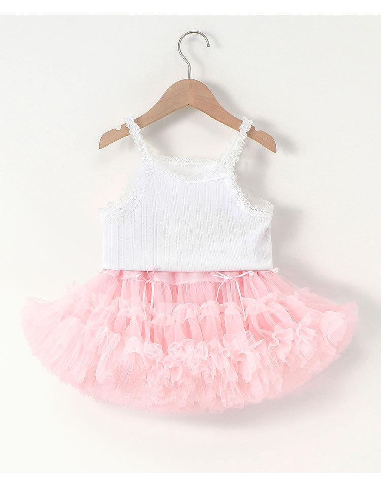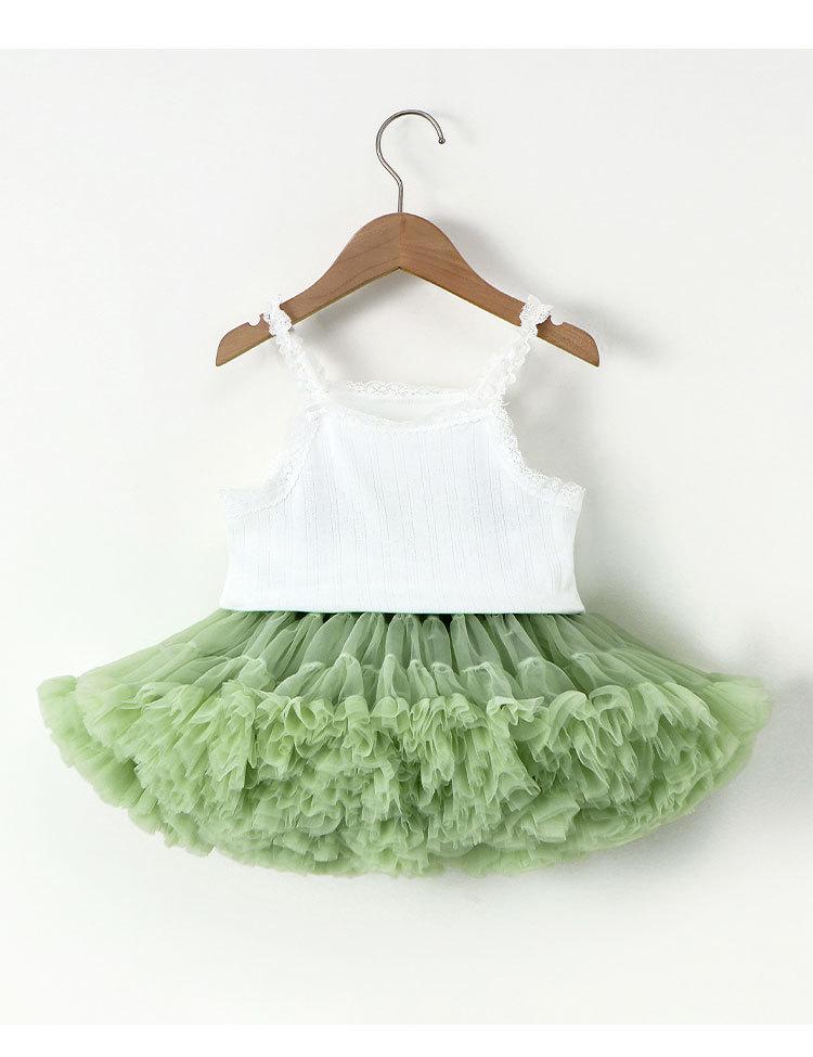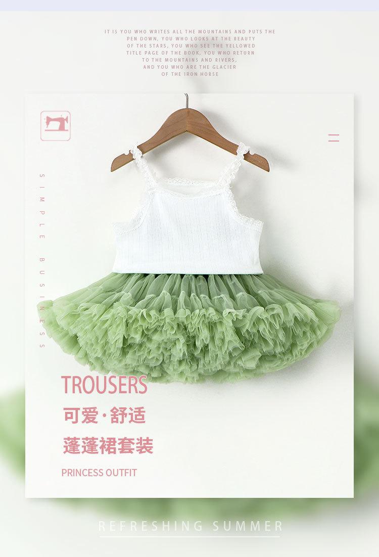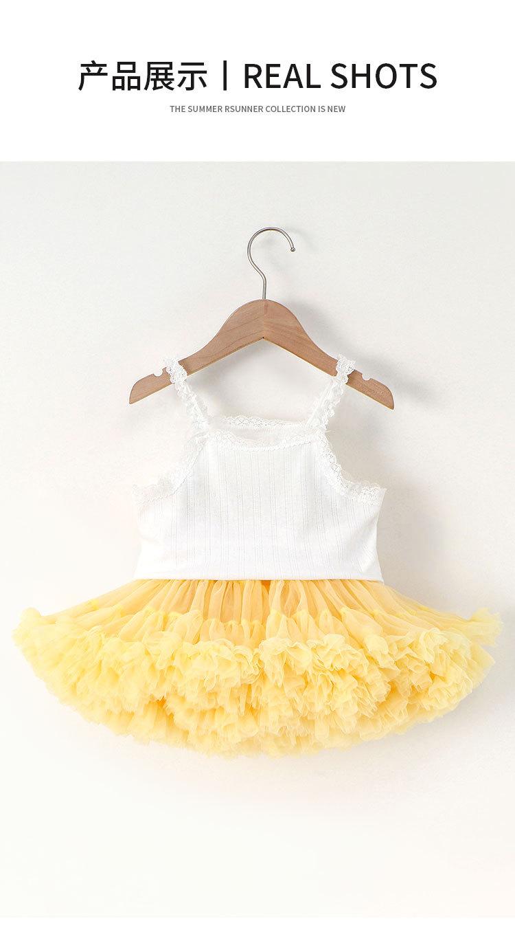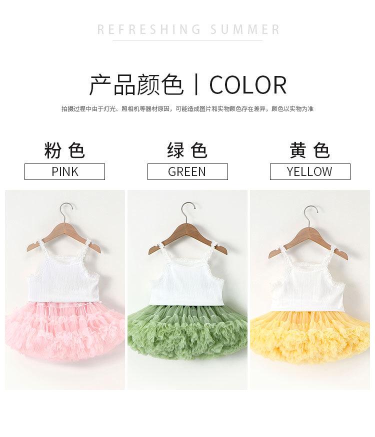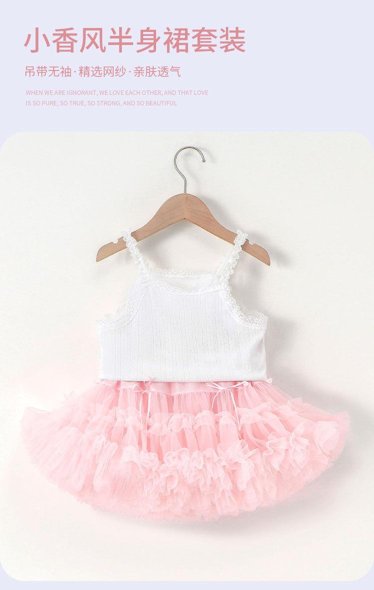 Traje de Verano para Niñas 2025 Estilo Bebé Chaleco Encaje para Niños Falda Tutú con Tirantes Conjunto de Dos Piezas