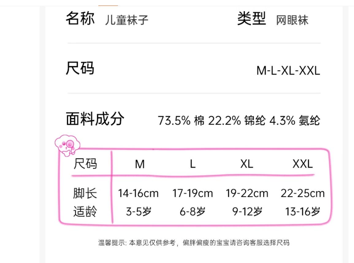 Recommended foot length for 3-5 years old is 13-15cm [shoe size 19-25] [soft combed cotton], Recommended foot ...