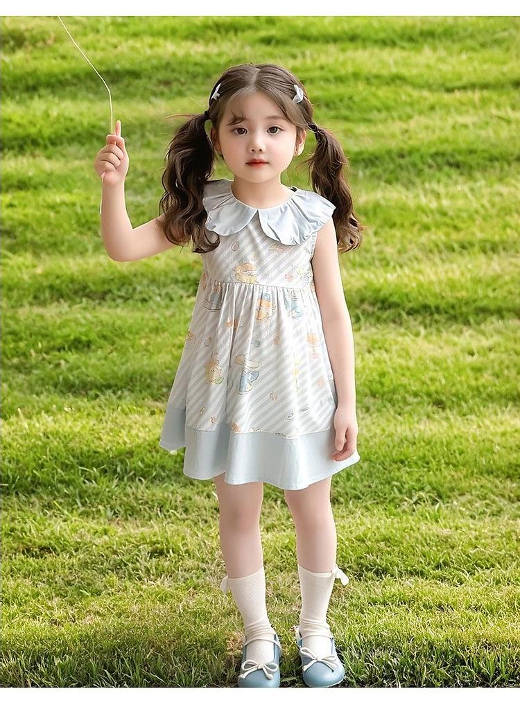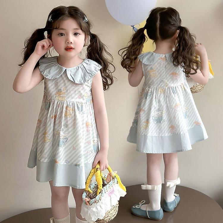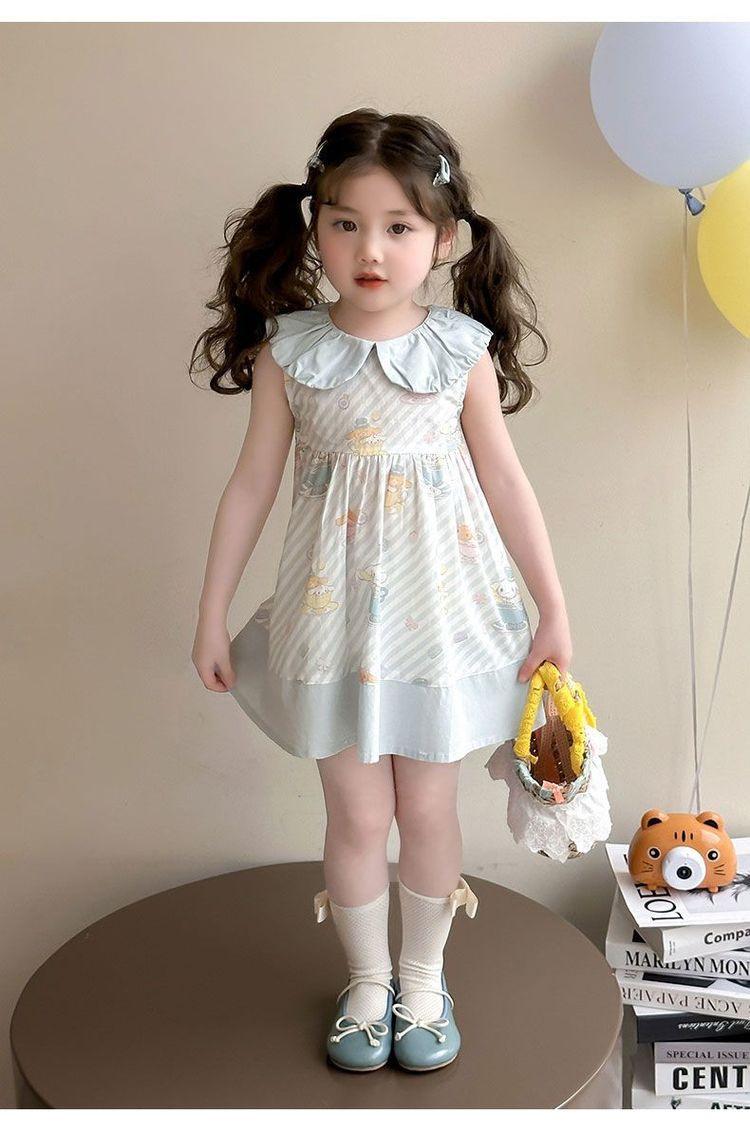 Vestido de Verano para Niñas 2025 Nuevo Estilo Vestido de Verano para Bebé Cuello de Muñeca Vestido de Princesa Lindo Chaleco Falda