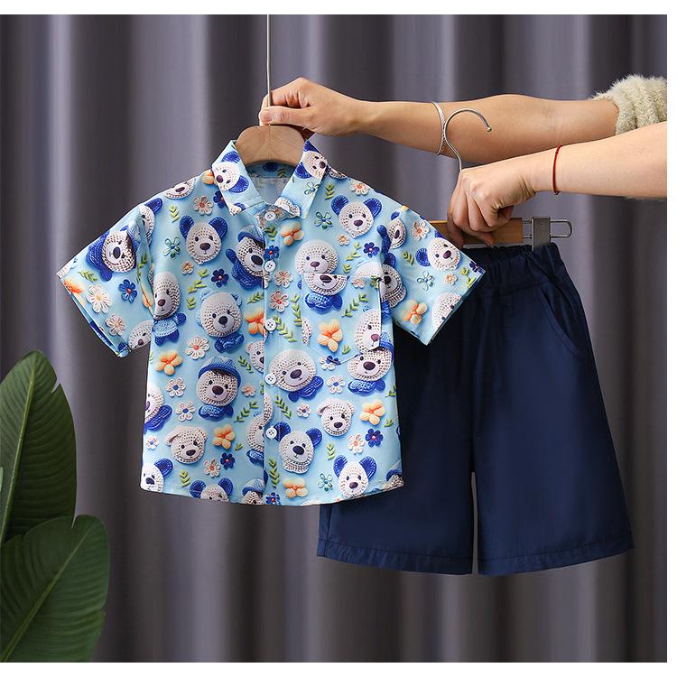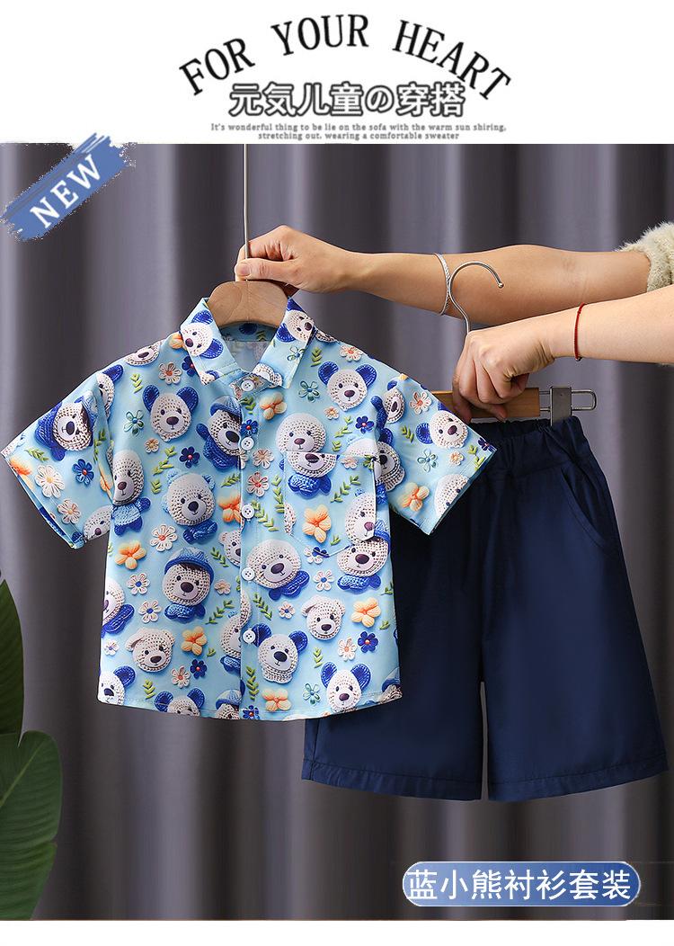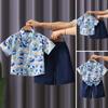 Traje de Verano para Niño 2025 Nuevo Estilo Camisa de Manga Corta Conjunto de Dos Piezas Delgado Fresco y Guapo Ropa de Calle para Bebé