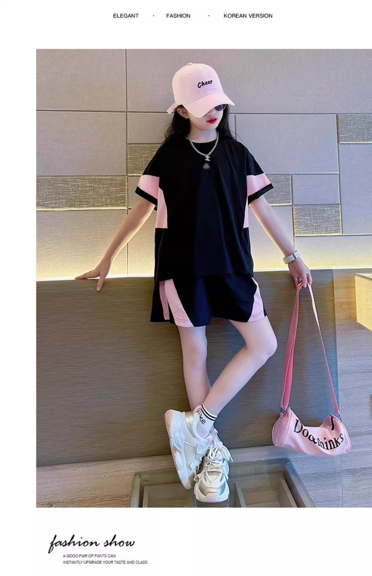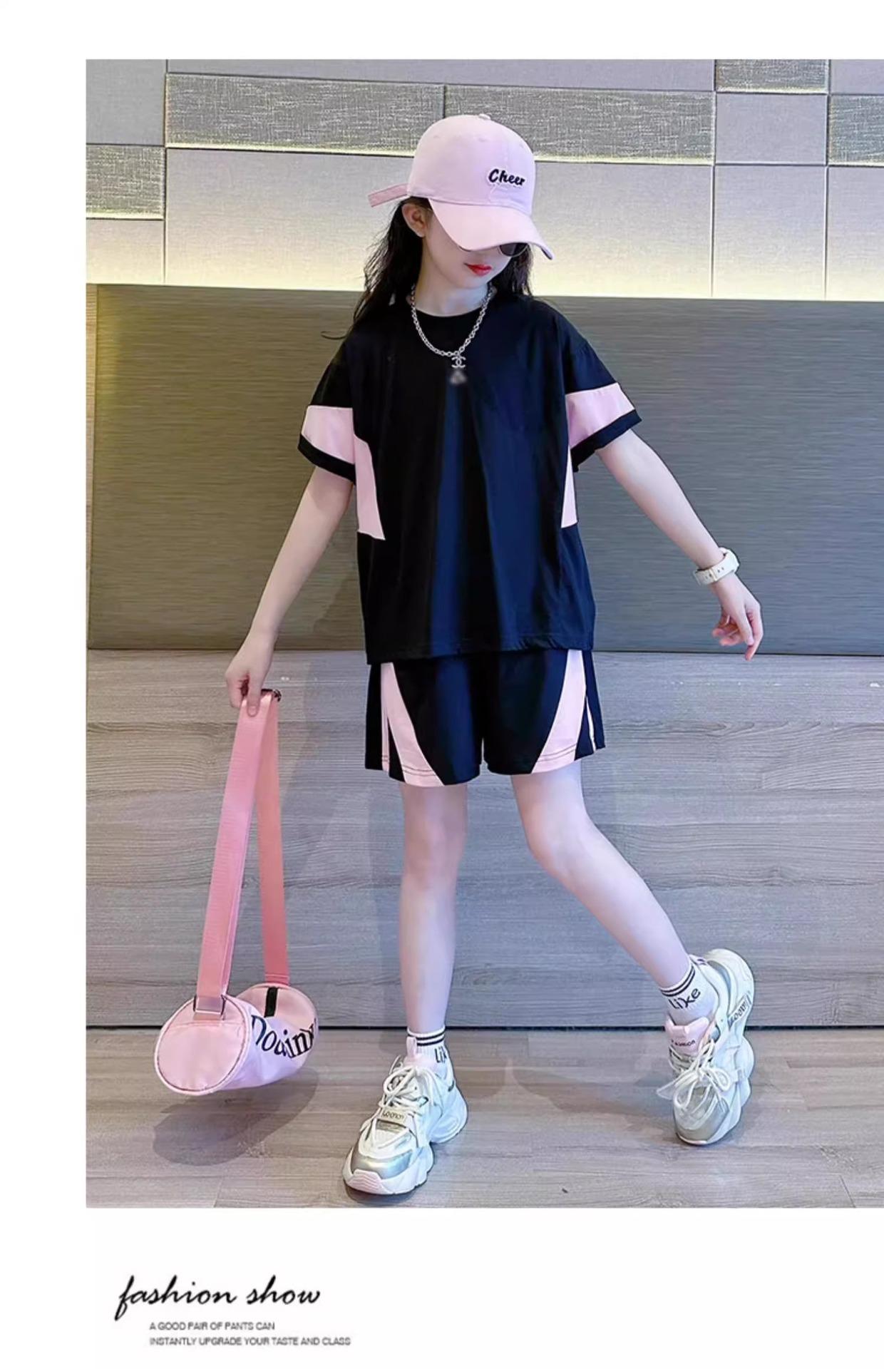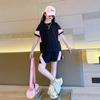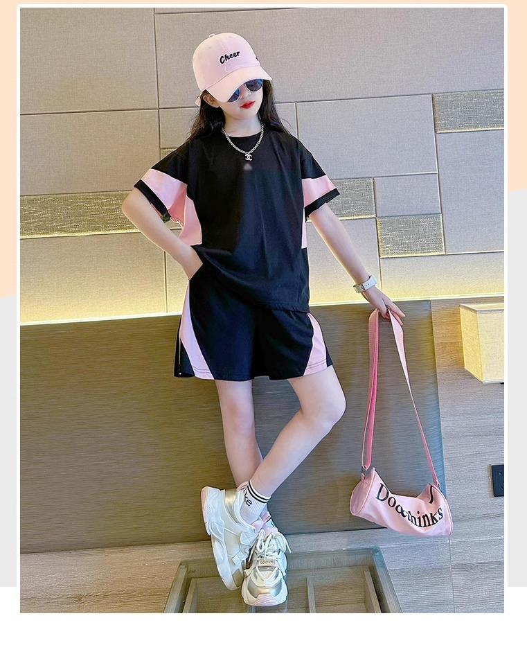 Traje de algodón Traje deportivo para niñas Verano Nuevo Estilo Occidental Niños Manga Corta Pantalones Cortos Verano Conjunto de Dos Piezas