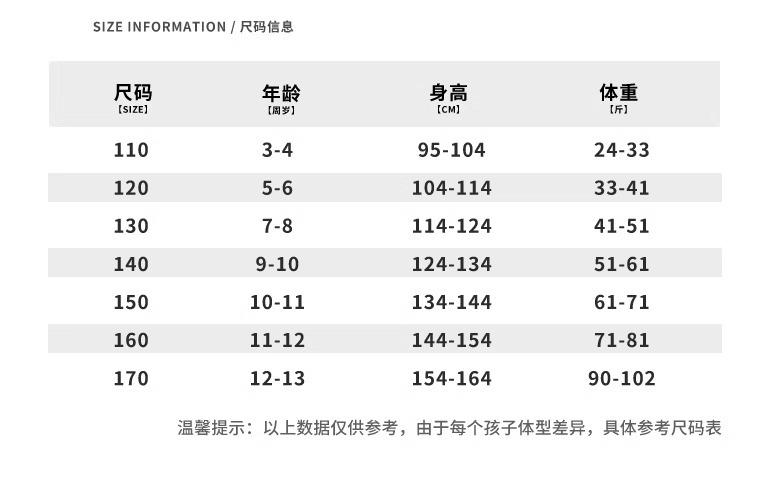 120cm, 130cm, 140cm, 150cm, 160cm, 170cm