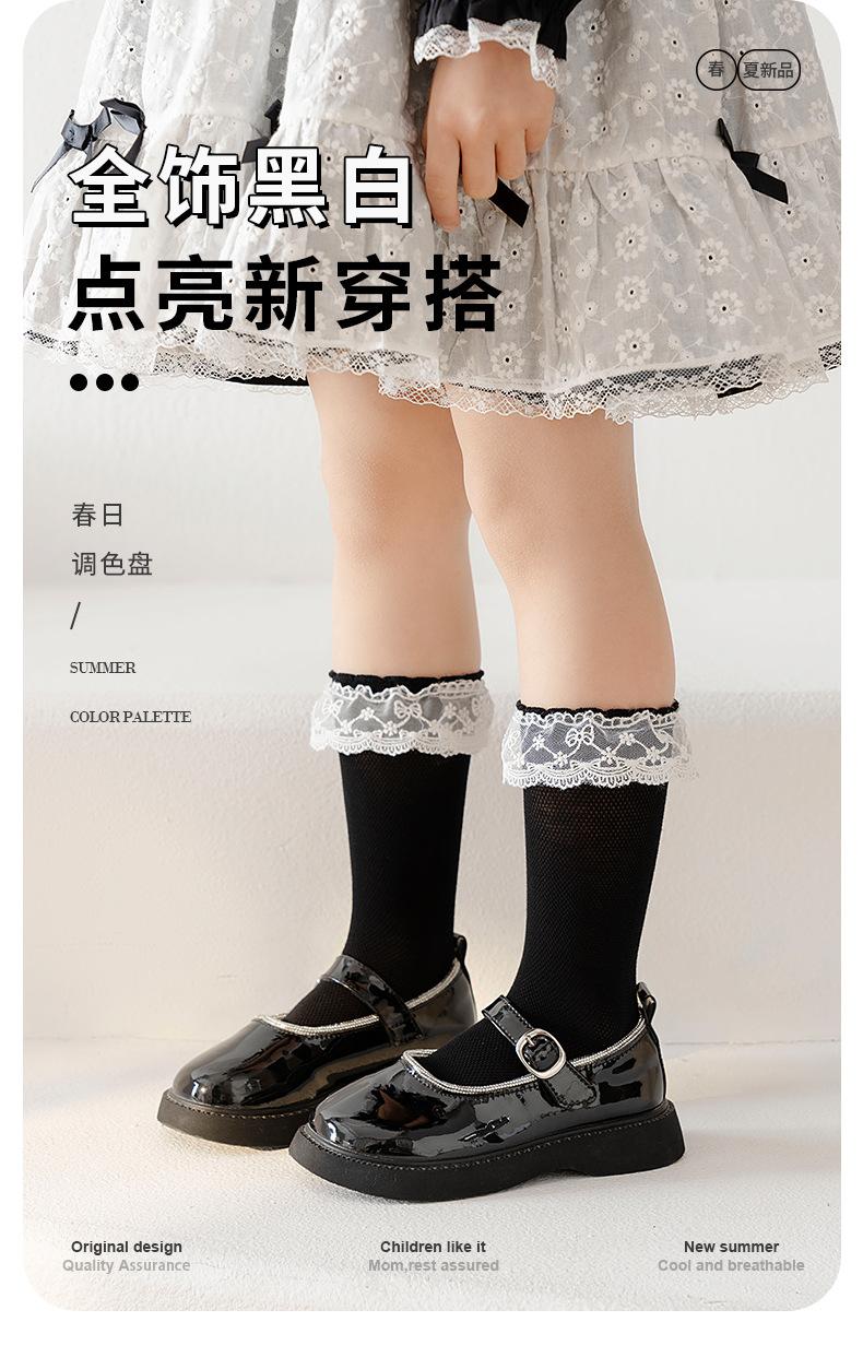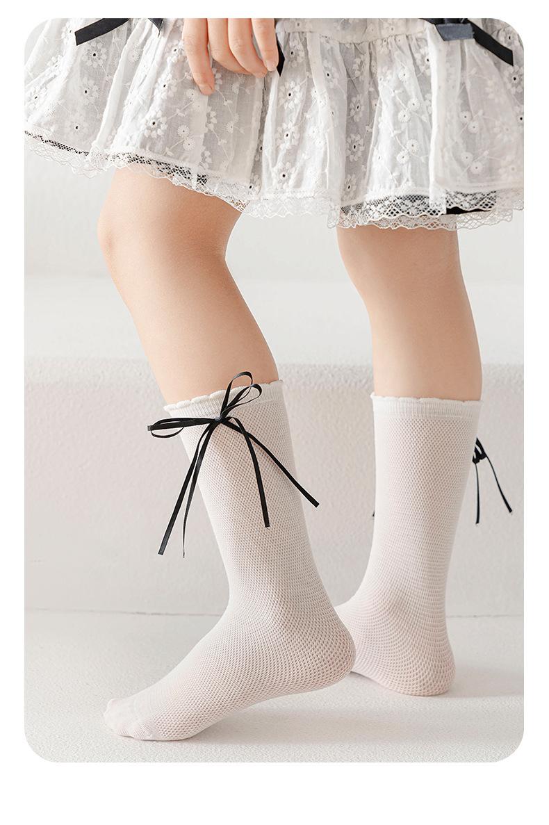 Calcetines de Media Caña para Niños de Malla Calada Fina de Verano Lazo de Encaje Calcetines de Pantorrilla para Niñas Medias Lindas para Bebé