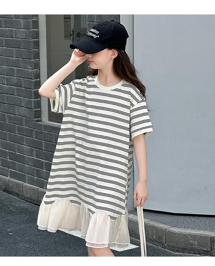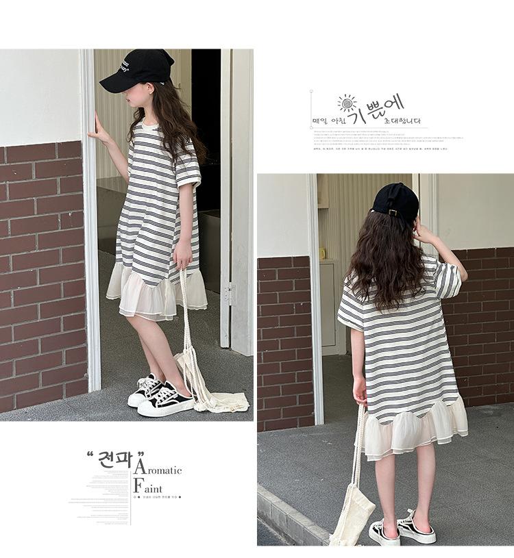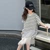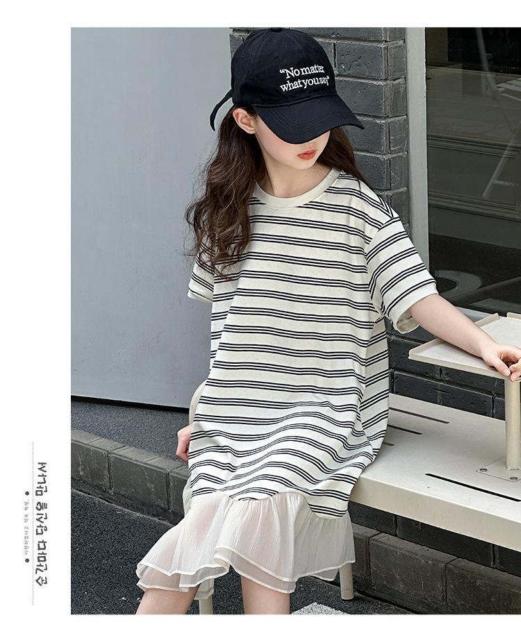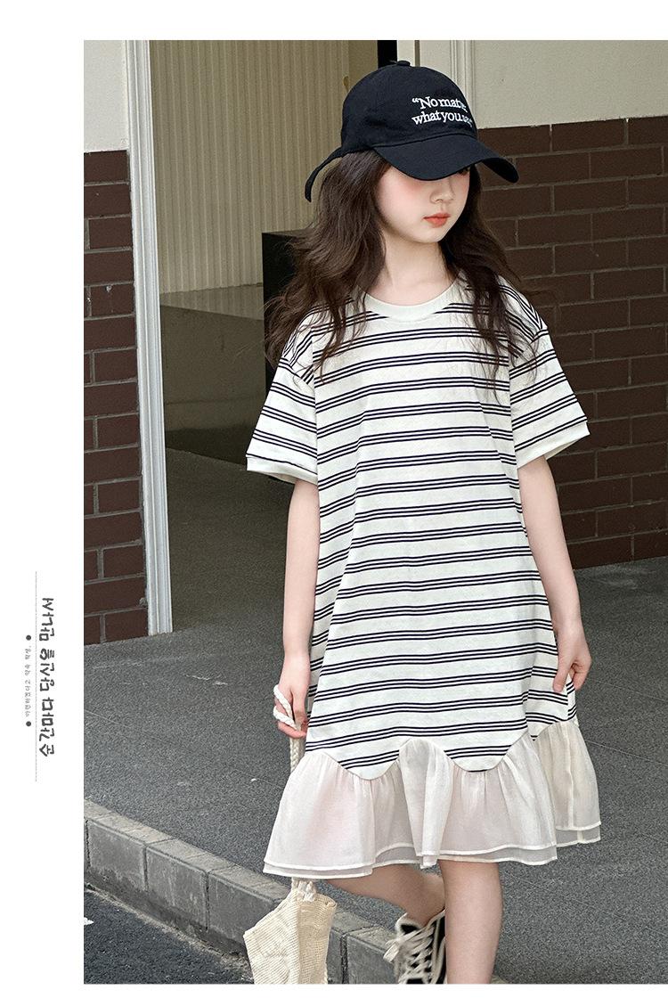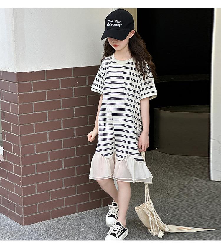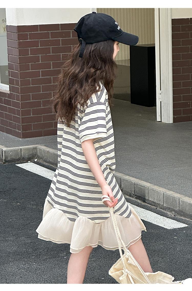 Vestido Camiseta para Niñas Verano 2025 Nuevo Estilo Niñas Estilo Coreano Falda Casual Niños Grandes Manga Corta t Falda a Rayas