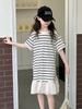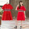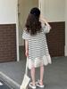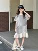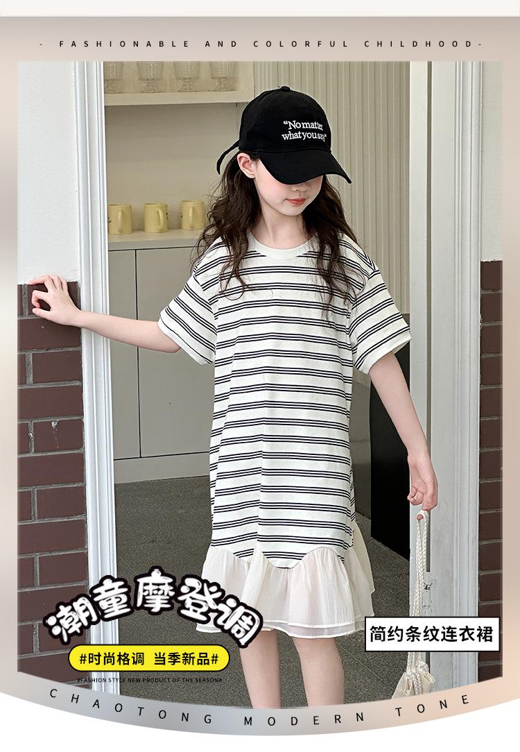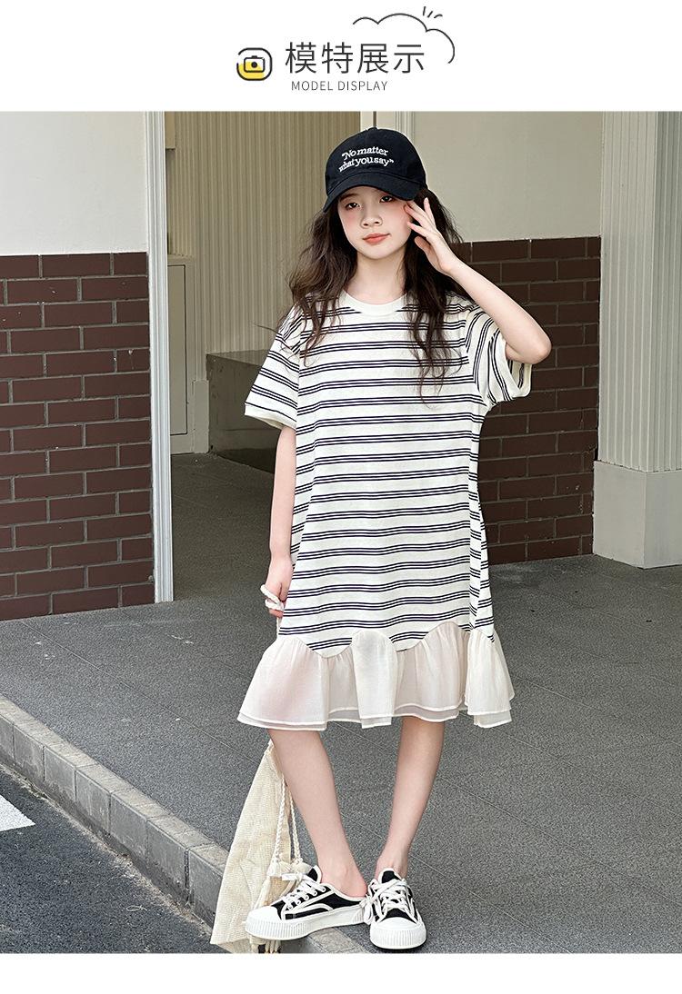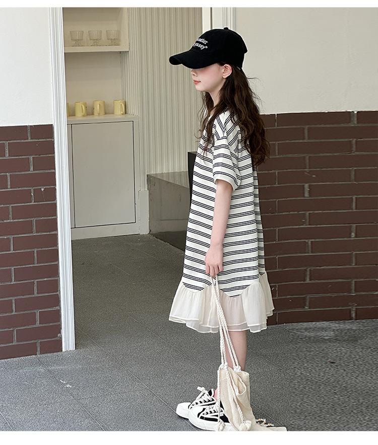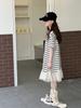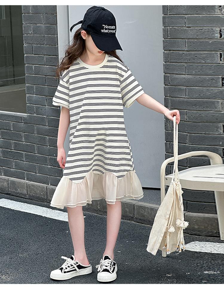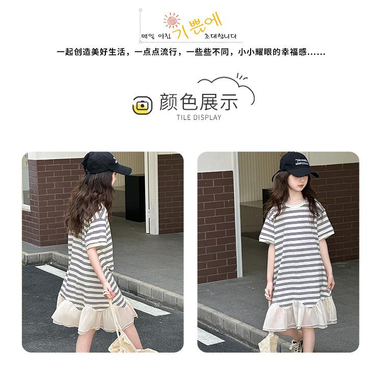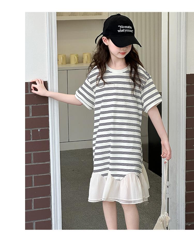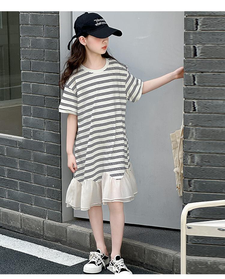 Vestido Camiseta para Niñas Verano 2025 Nuevo Estilo Niñas Estilo Coreano Falda Casual Niños Grandes Manga Corta t Falda a Rayas