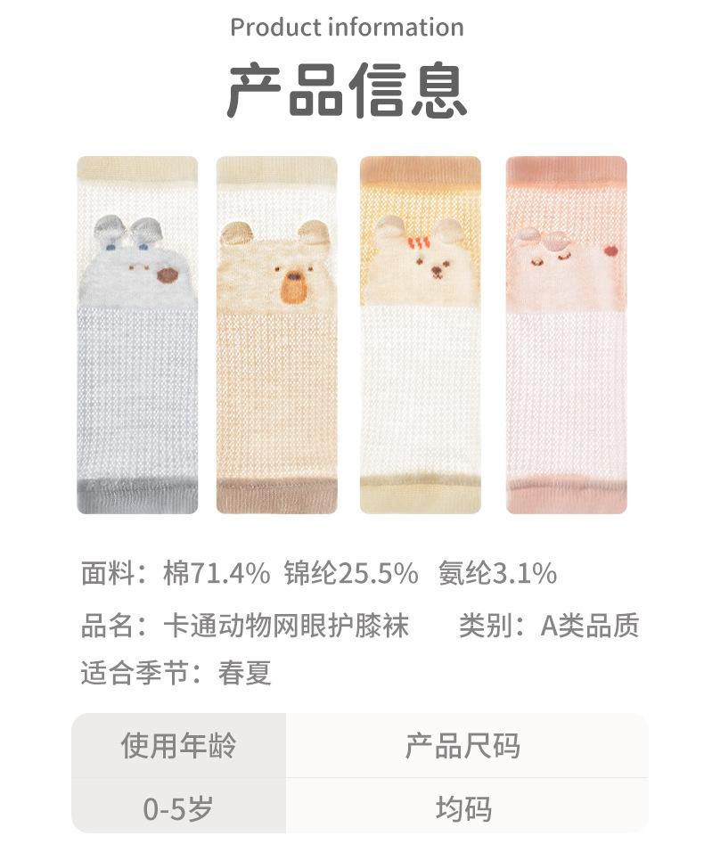 Rodillera para Bebé Algodón Peinado Malla Transpirable Almohadilla para Gatear para Bebé Pie Antibacteriano Dibujos Animados Antimosquitos Rodillera