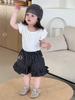 Ropa de Verano para Bebé Conjunto de Dos Piezas Delgado para Niños Estilo Coreano Ropa para Niños Camiseta de Encaje para Niña Shorts a Cuadros Traje de Moda