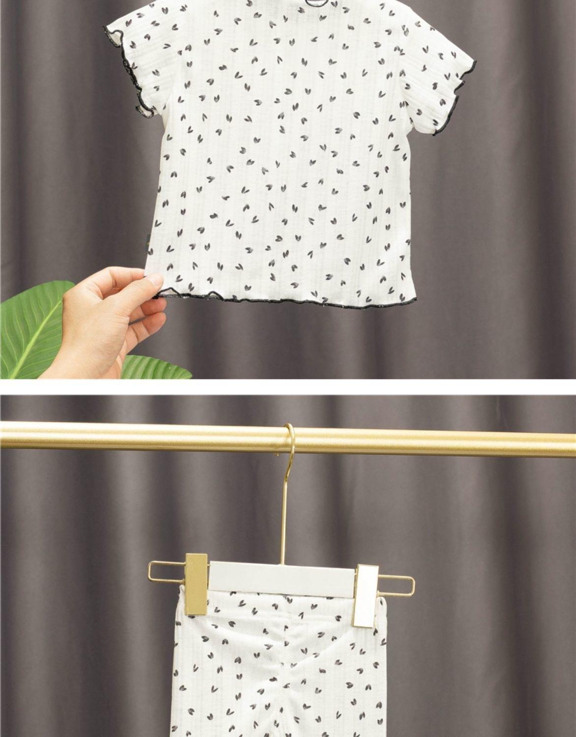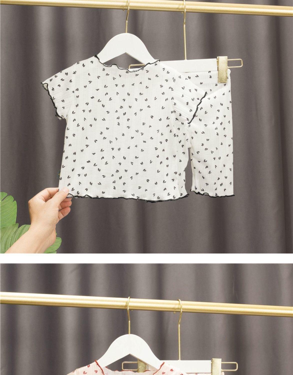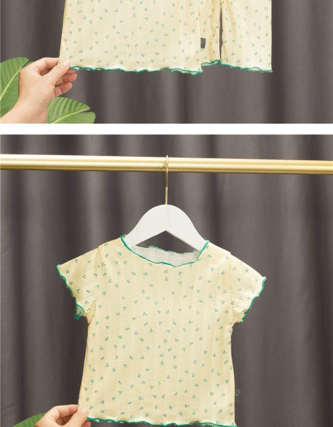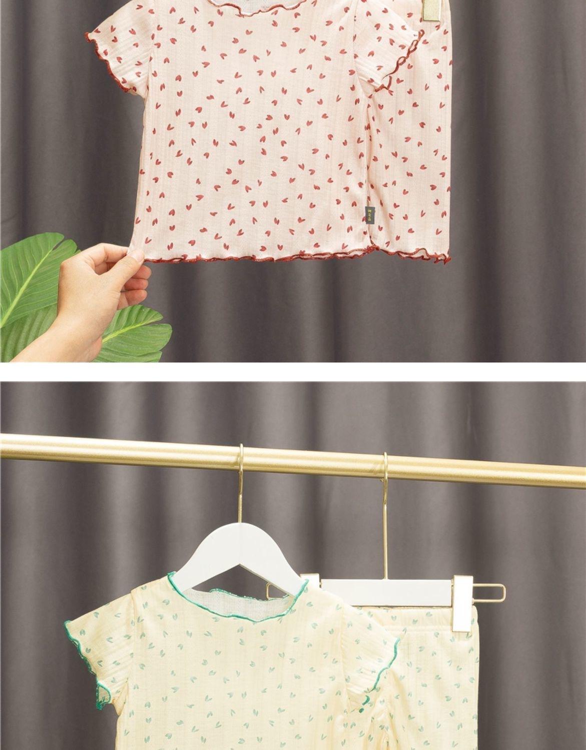 Ropa Delgada de Seda de Hielo de Manga Corta para Bebé Niña Verano Nueva Ropa para Niños Tesoro de Mujer Traje Casual Ropa para el Hogar Conjunto de Dos Piezas