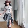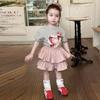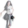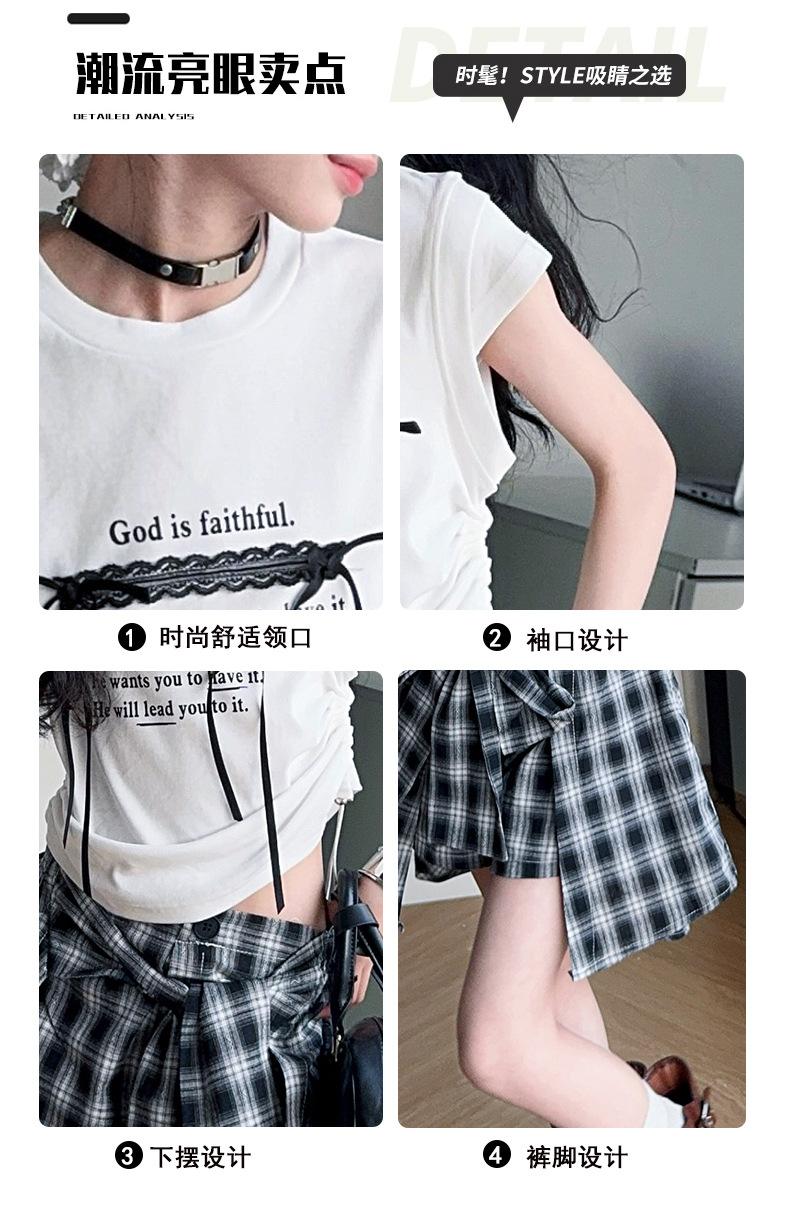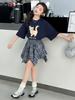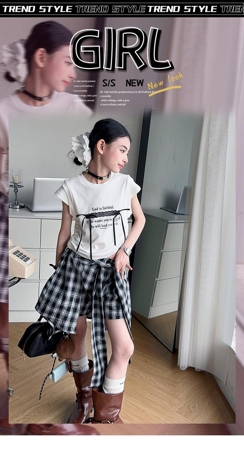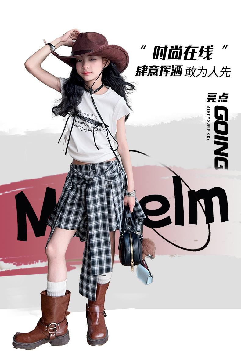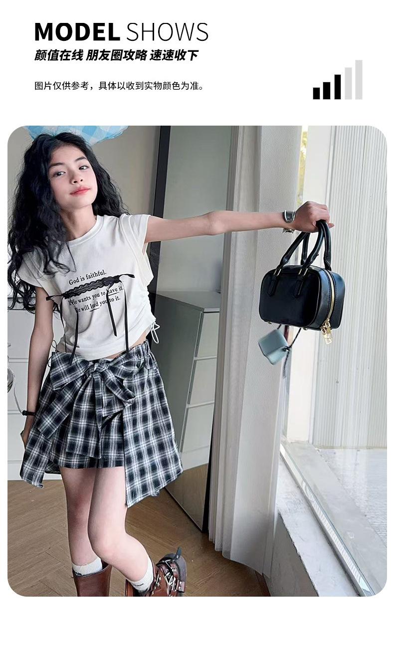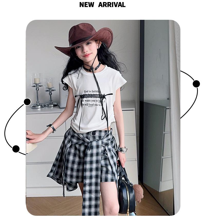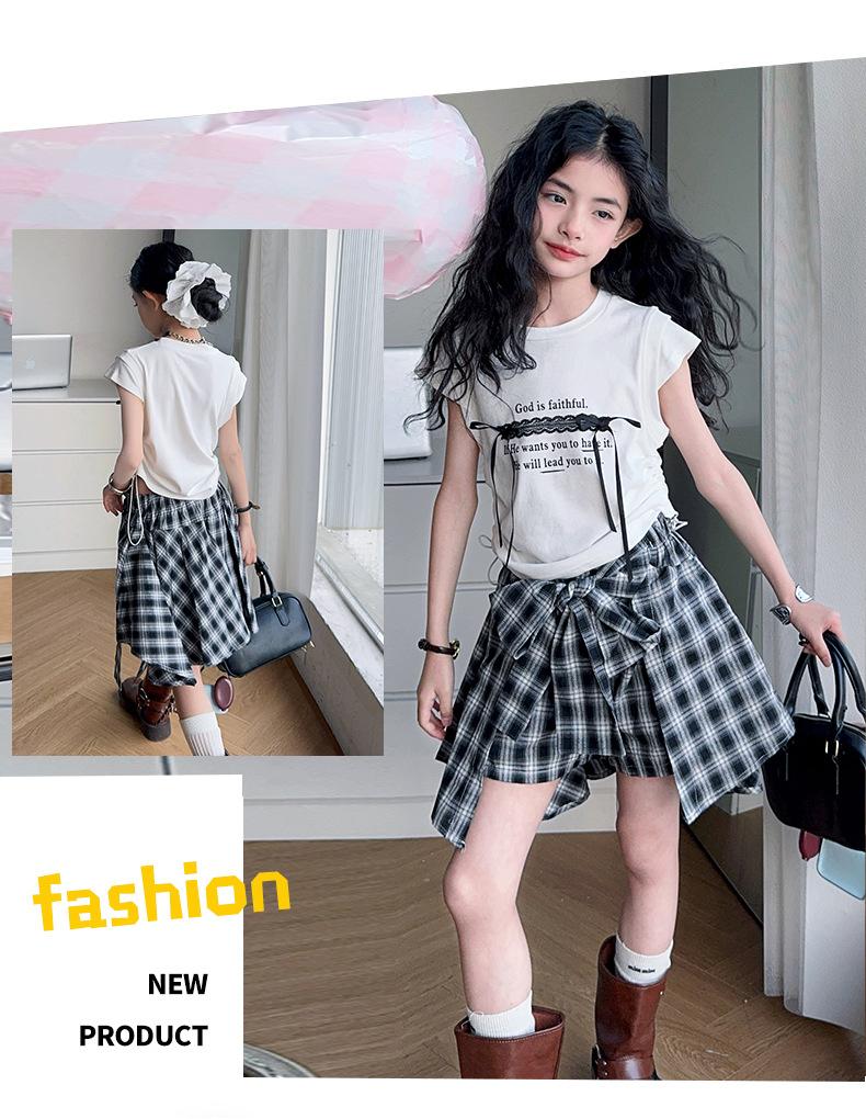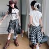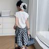 Traje para Niñas Verano 2025 Nuevo Camiseta de Manga Corta para Niños Falda a Cuadros Conjunto de Dos Piezas Ropa de Verano Moderna para Niñas
