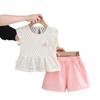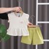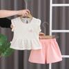 Traje de ropa de verano para niñas 2025 Nuevo Ropa casual para niños Moda de verano de manga corta de dos piezas para niñas para el cabello