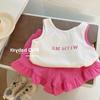 Traje Dulce Lindo para Niña Verano Nuevo Estilo Pequeño Fresco Bebé Niña Rojo Tirantes Conjunto de Dos Piezas a la Moda