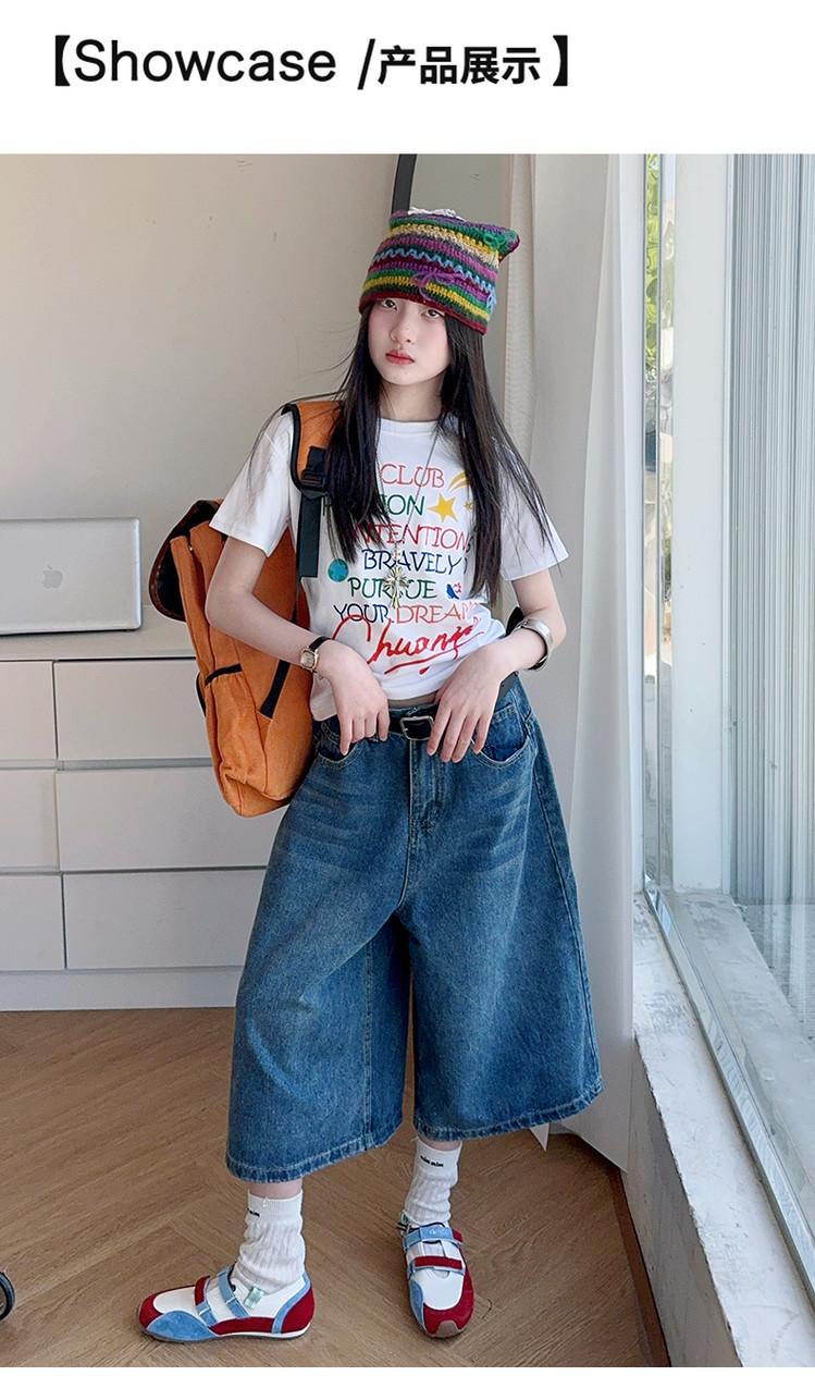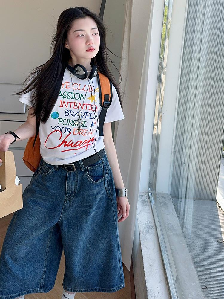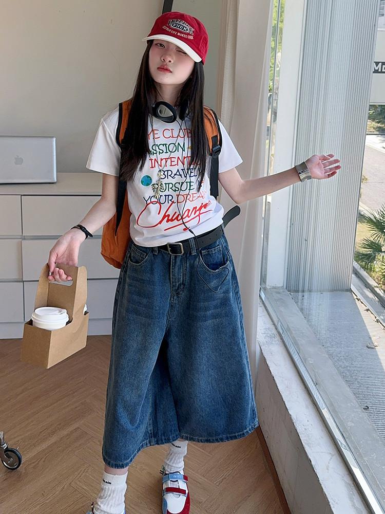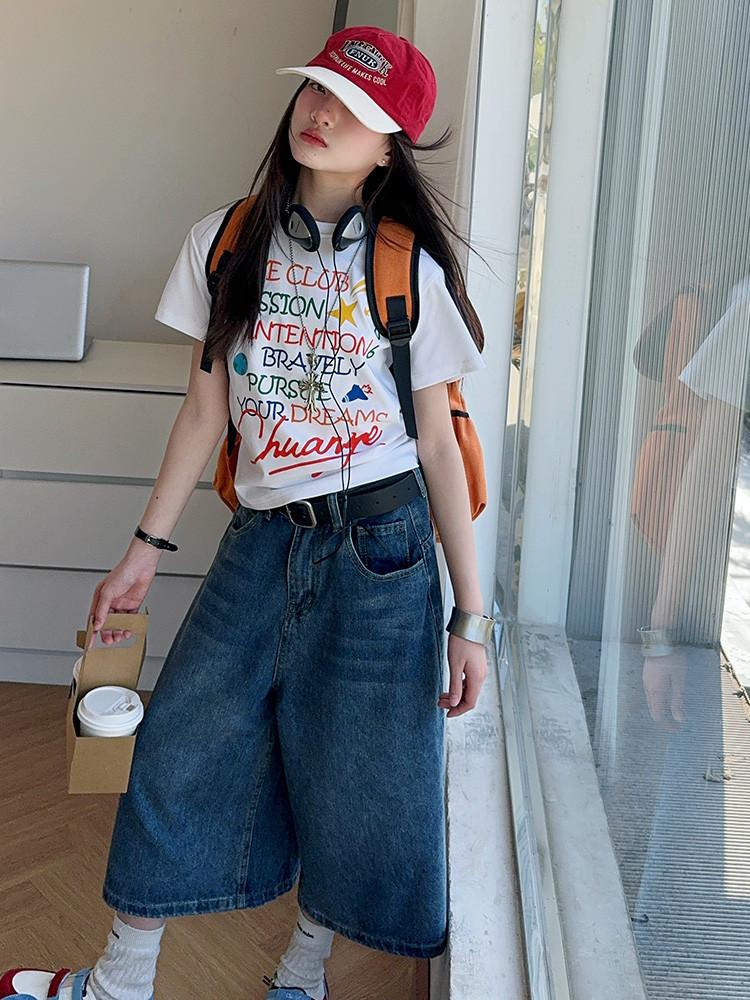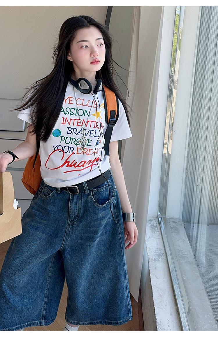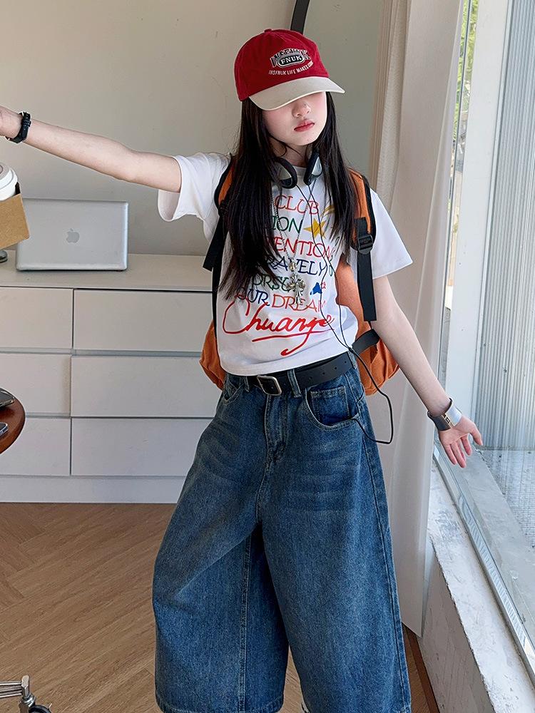 Compra Nuevo verano 2025 para niñas cuhk niños camiseta coreana de manga corta pantalones de mezclilla traje de moda de verano marea al por mayor en Joom.pro