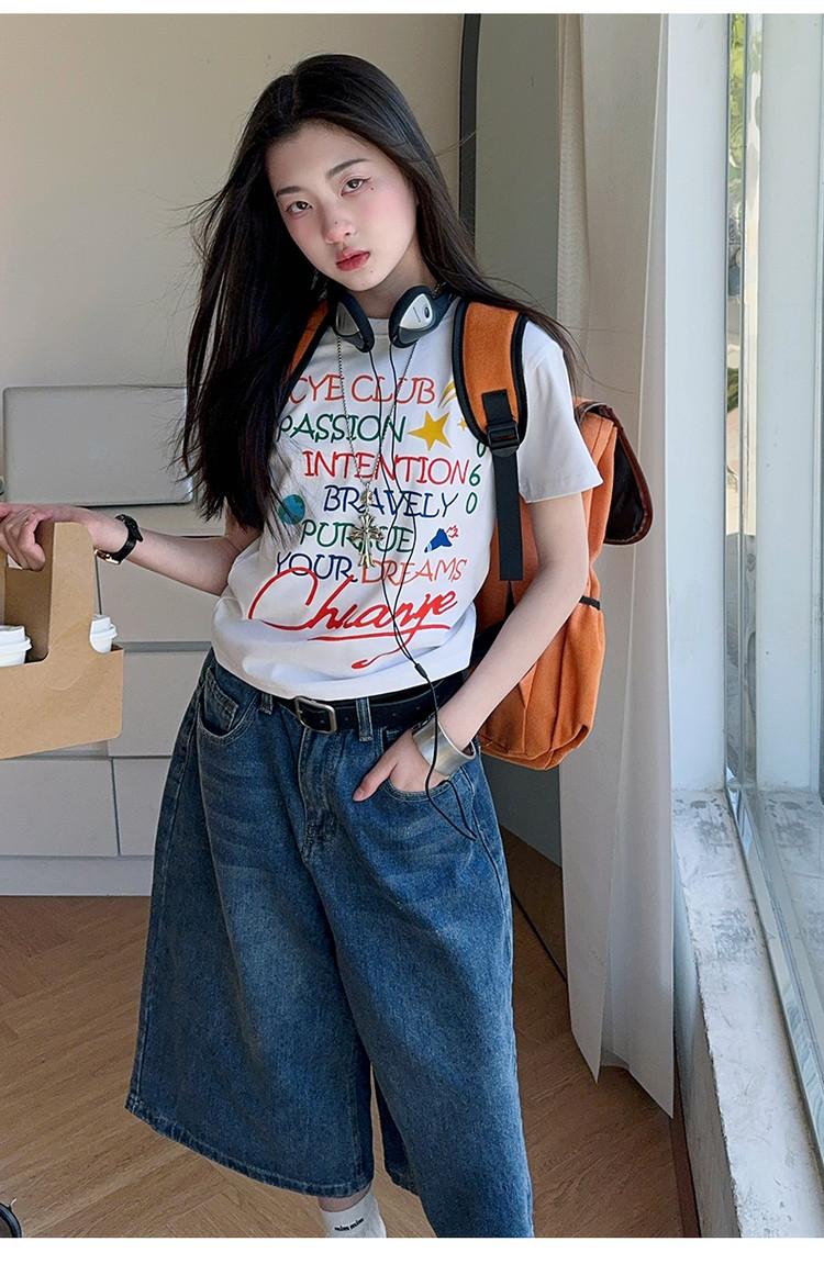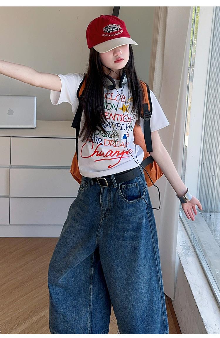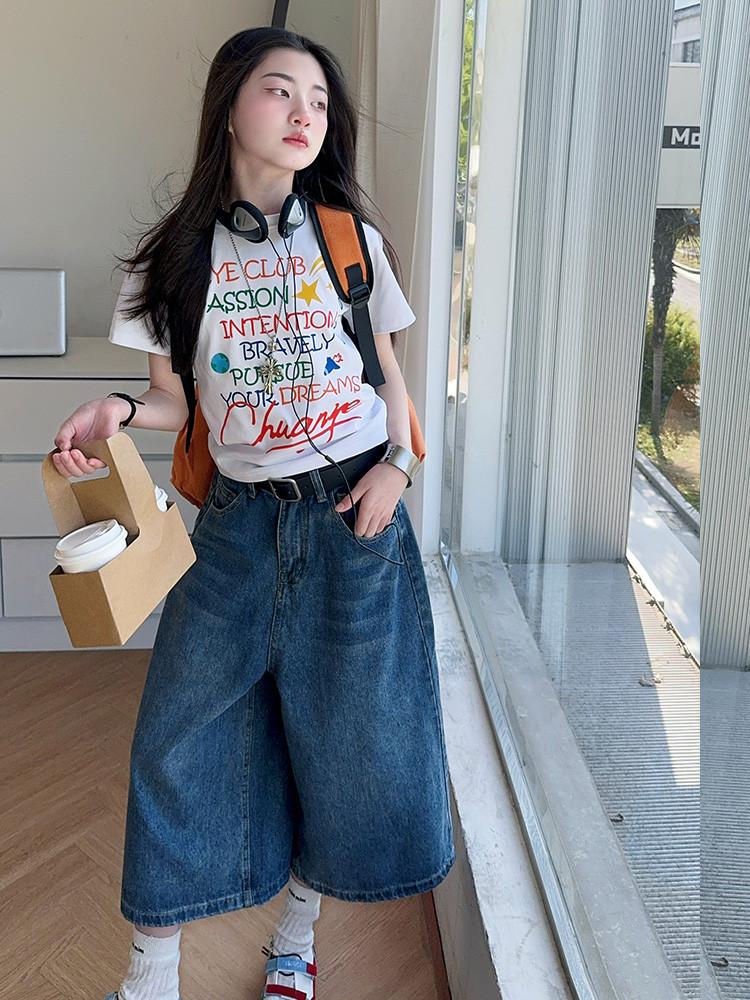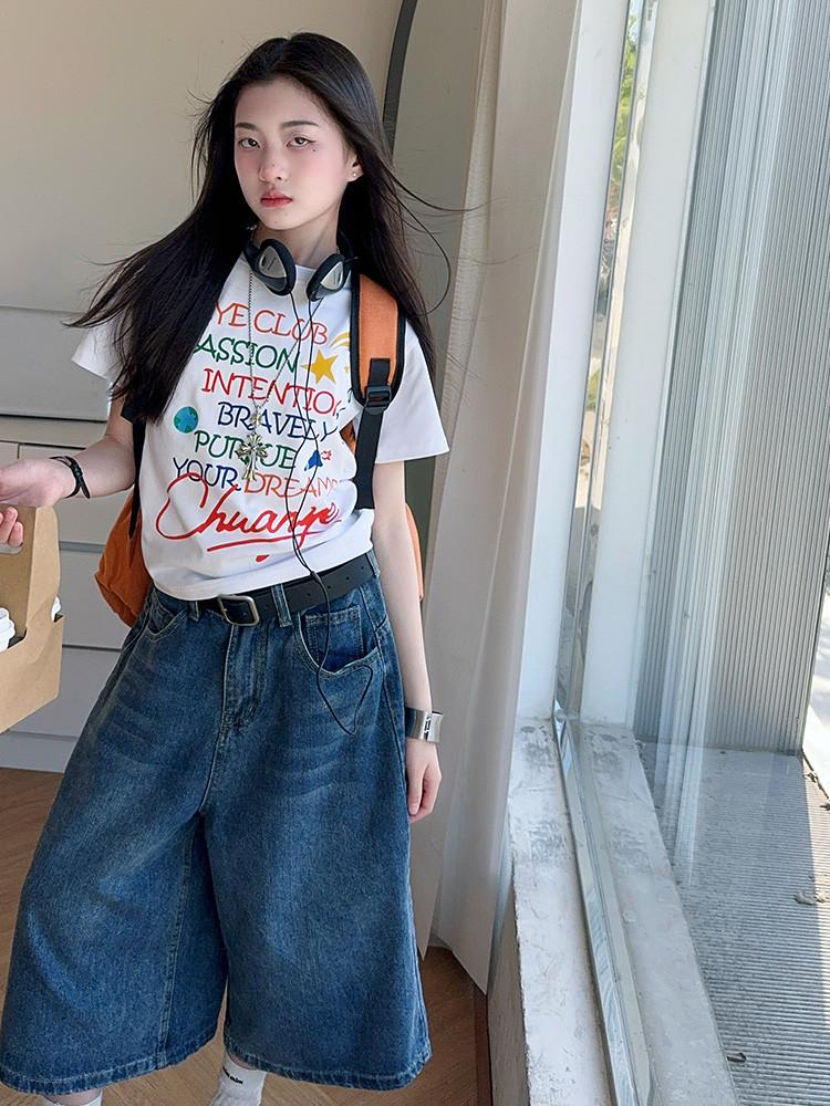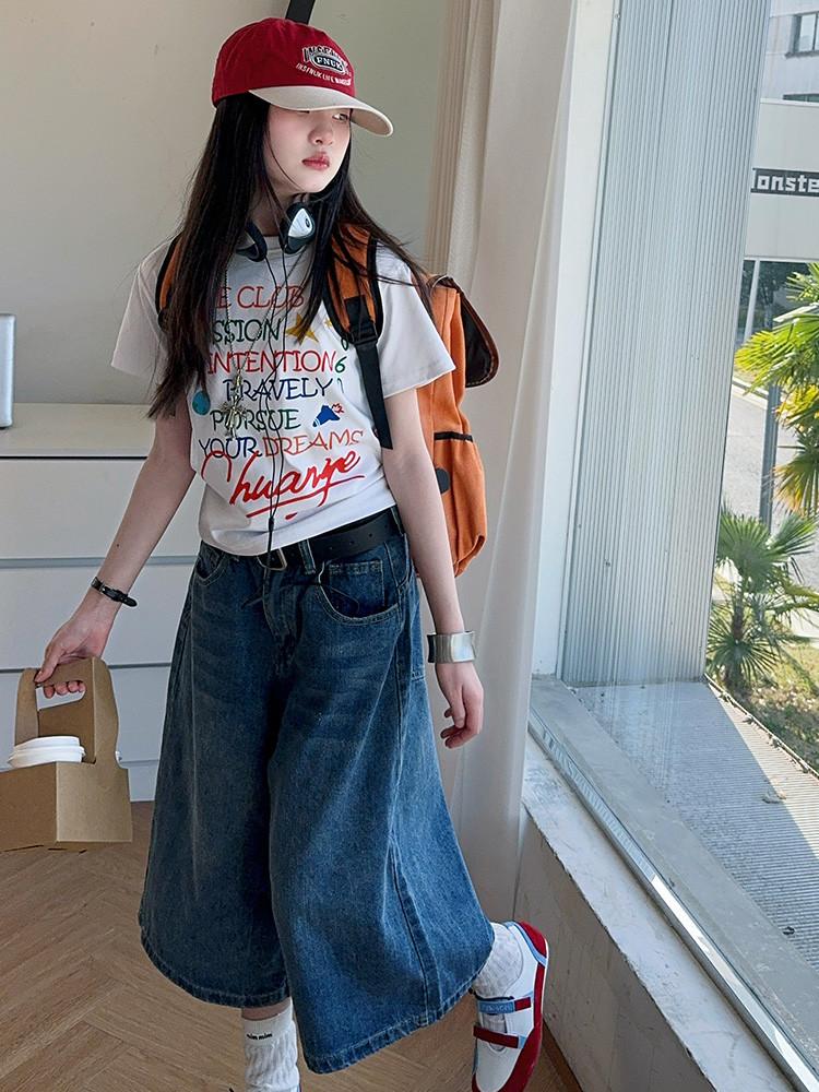 Compra Nuevo verano 2025 para niñas cuhk niños camiseta coreana de manga corta pantalones de mezclilla traje de moda de verano marea al por mayor en Joom.pro