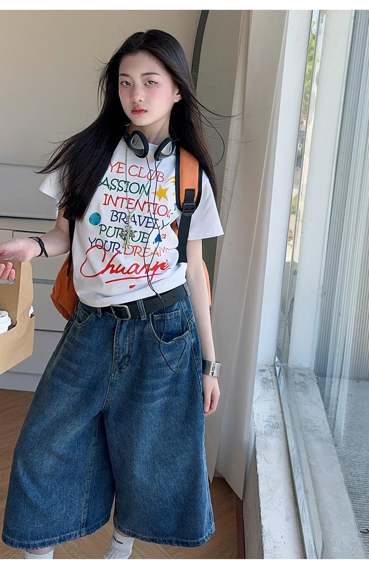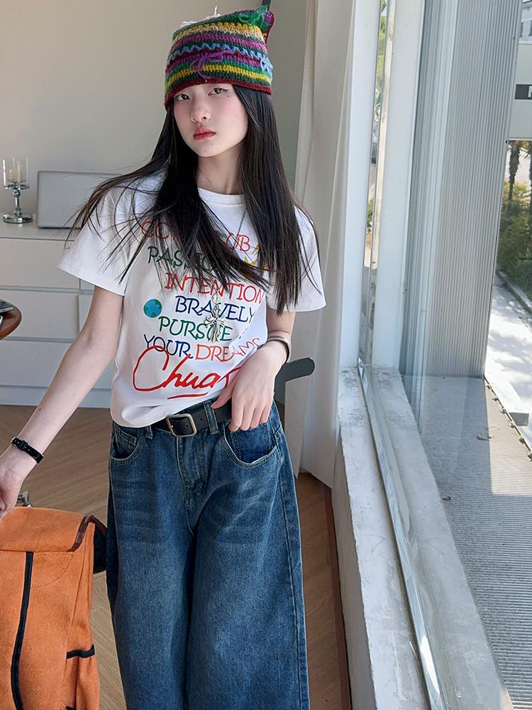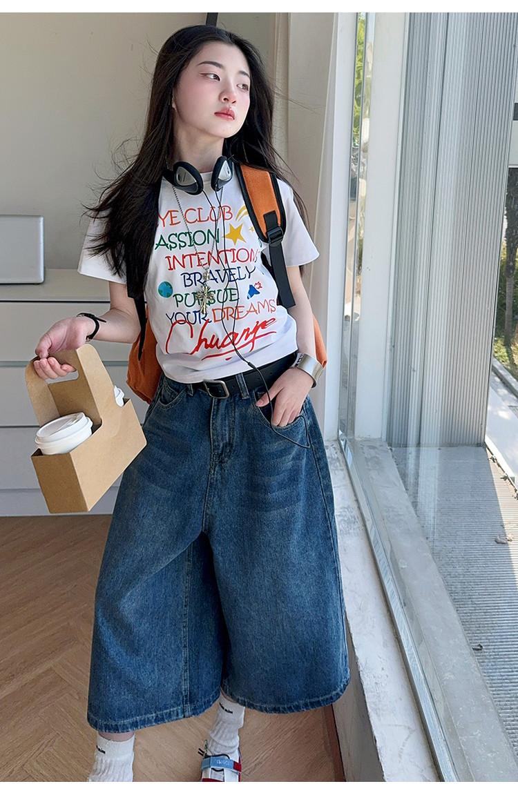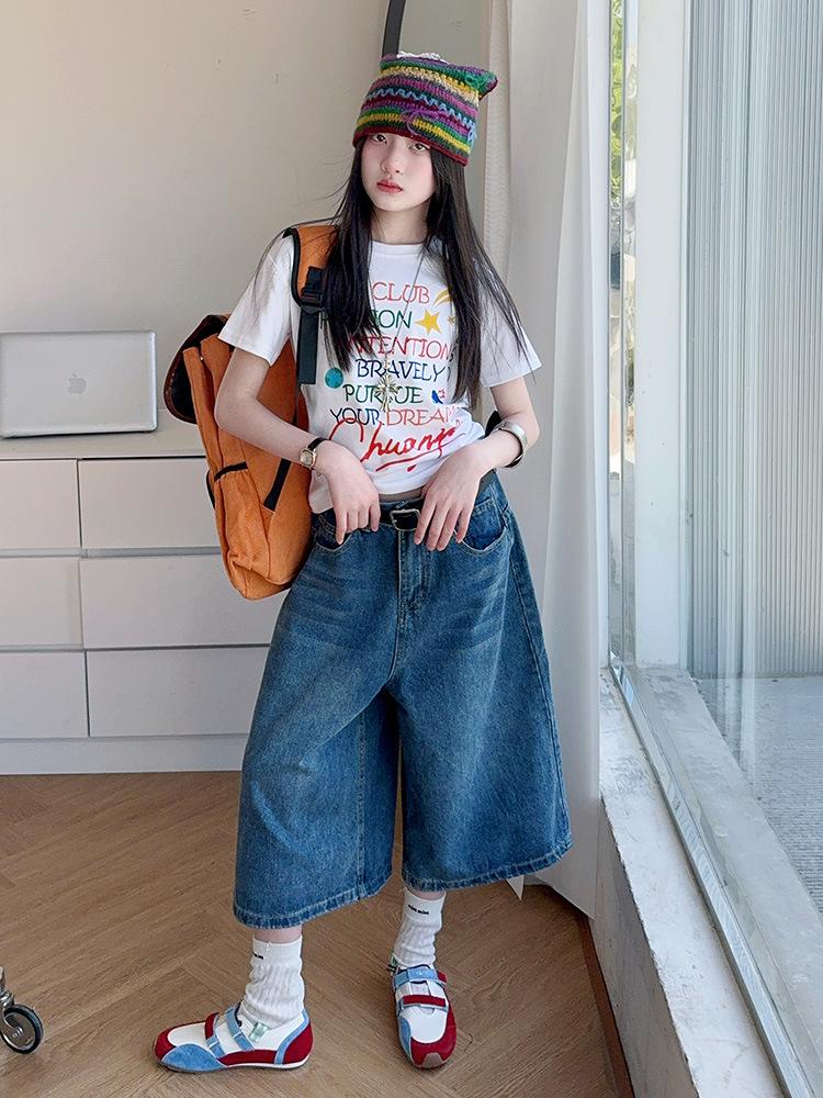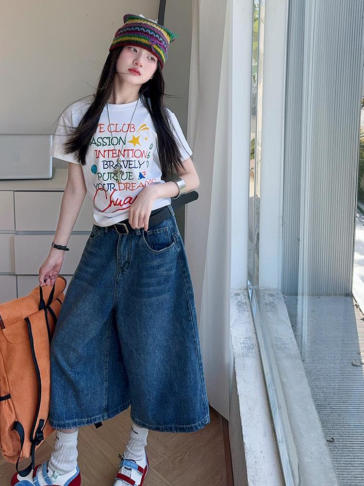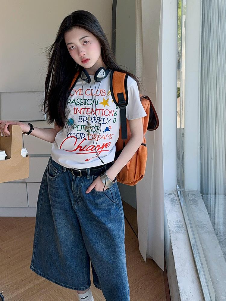 Compra Nuevo verano 2025 para niñas cuhk niños camiseta coreana de manga corta pantalones de mezclilla traje de moda de verano marea al por mayor en Joom.pro