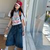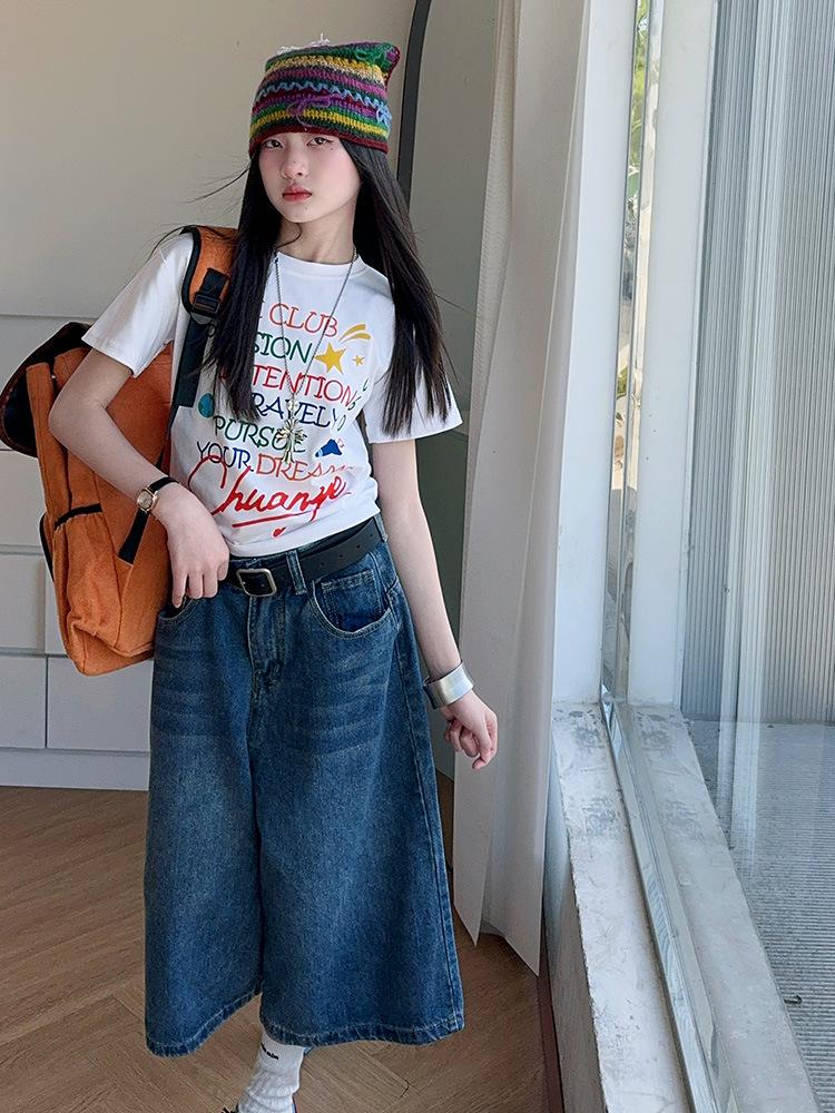 Nuevo verano 2025 para niñas cuhk niños camiseta coreana de manga corta pantalones de mezclilla traje de moda de verano marea