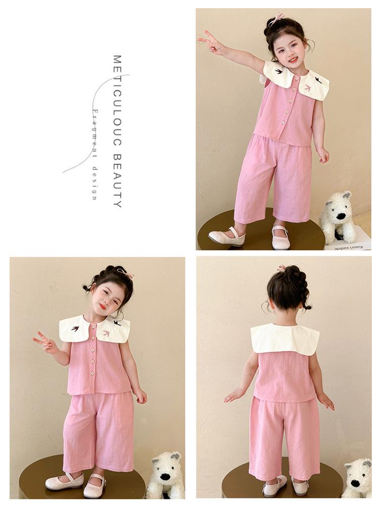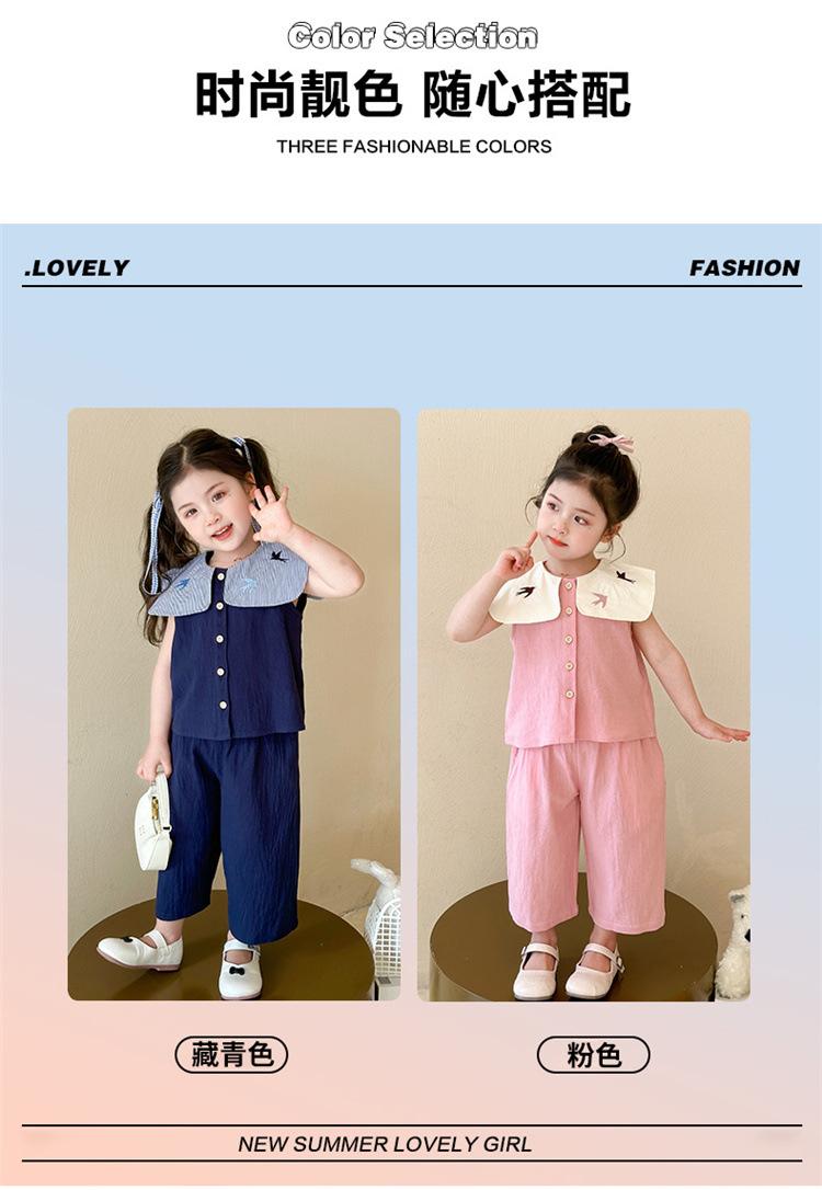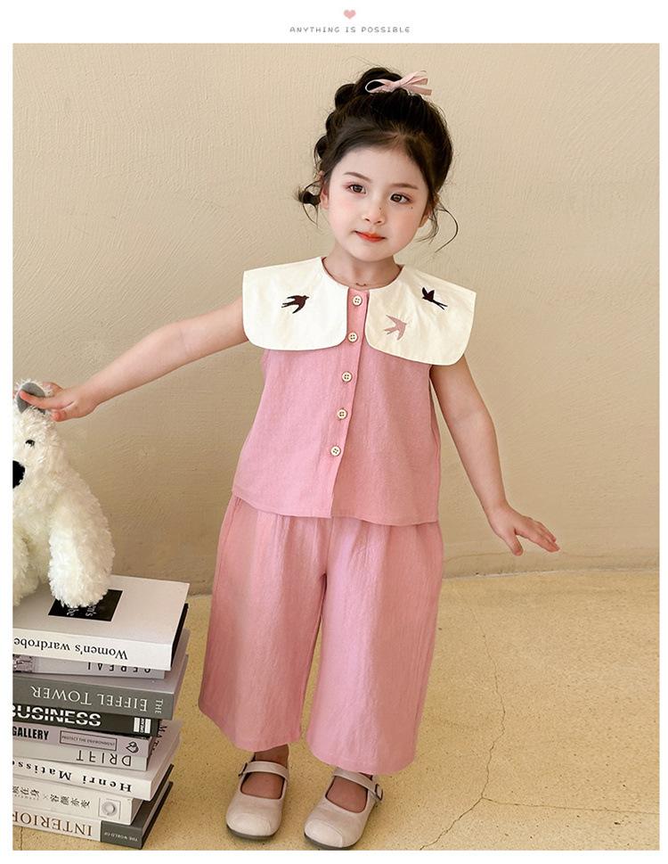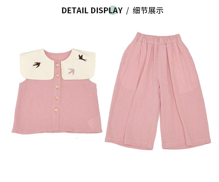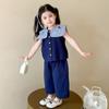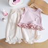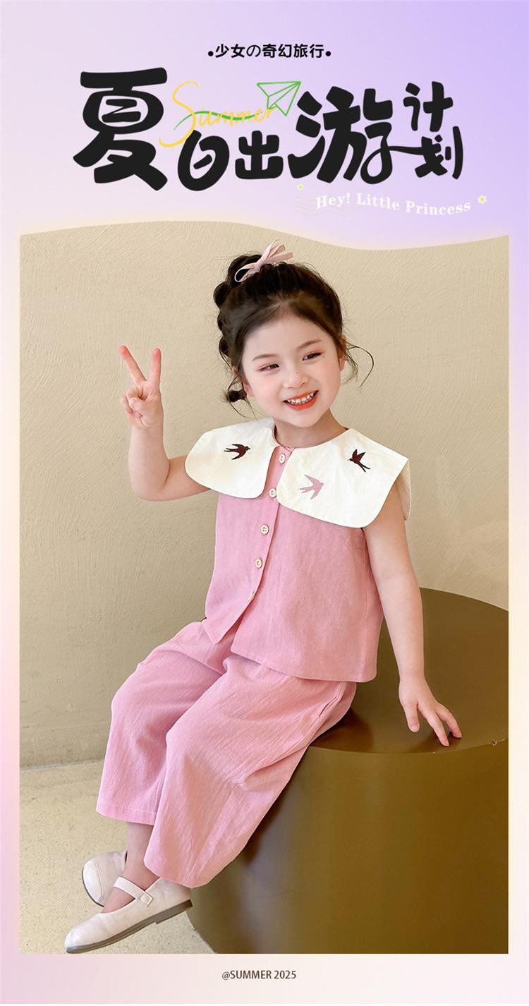Traje de Verano para Niñas 2025 Nuevo Traje sin Mangas Estilo Occidental para Bebé Niña Conjunto de Dos Piezas de Top y Pantalón Estilo Coreano para Niños
