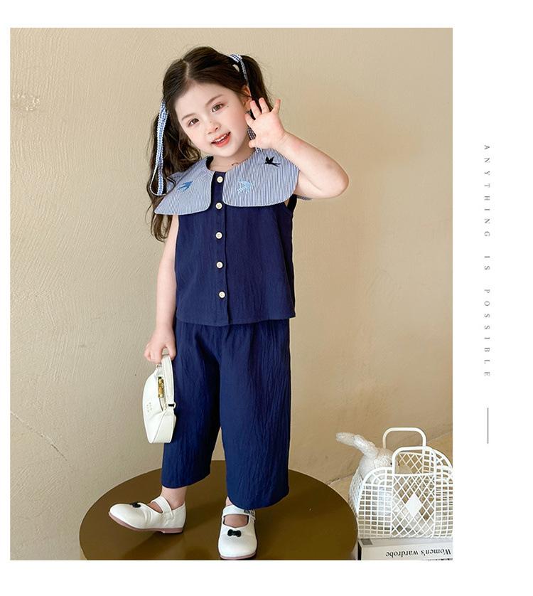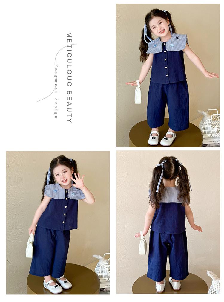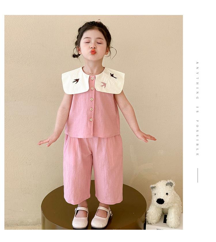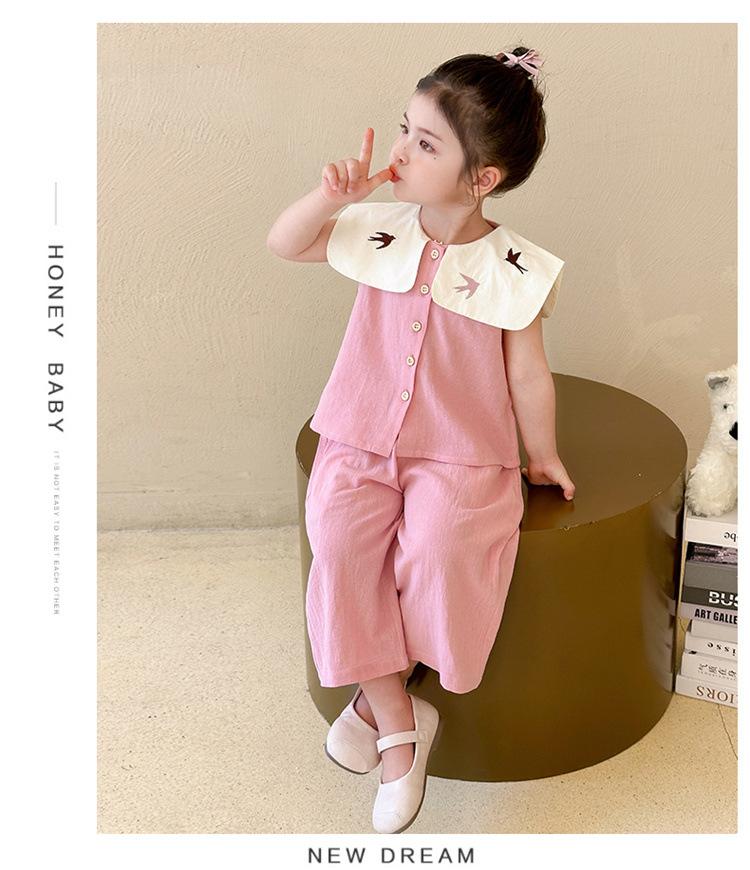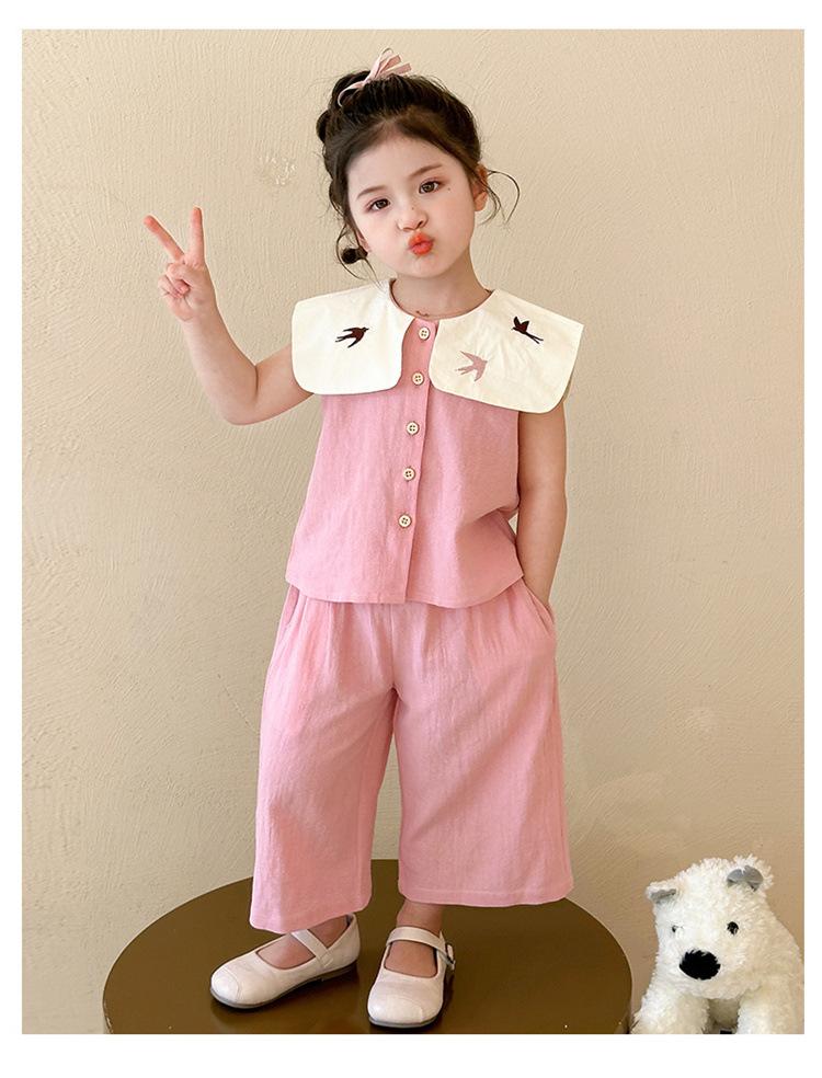 Traje de Verano para Niñas 2025 Nuevo Traje sin Mangas Estilo Occidental para Bebé Niña Conjunto de Dos Piezas de Top y Pantalón Estilo Coreano para Niños