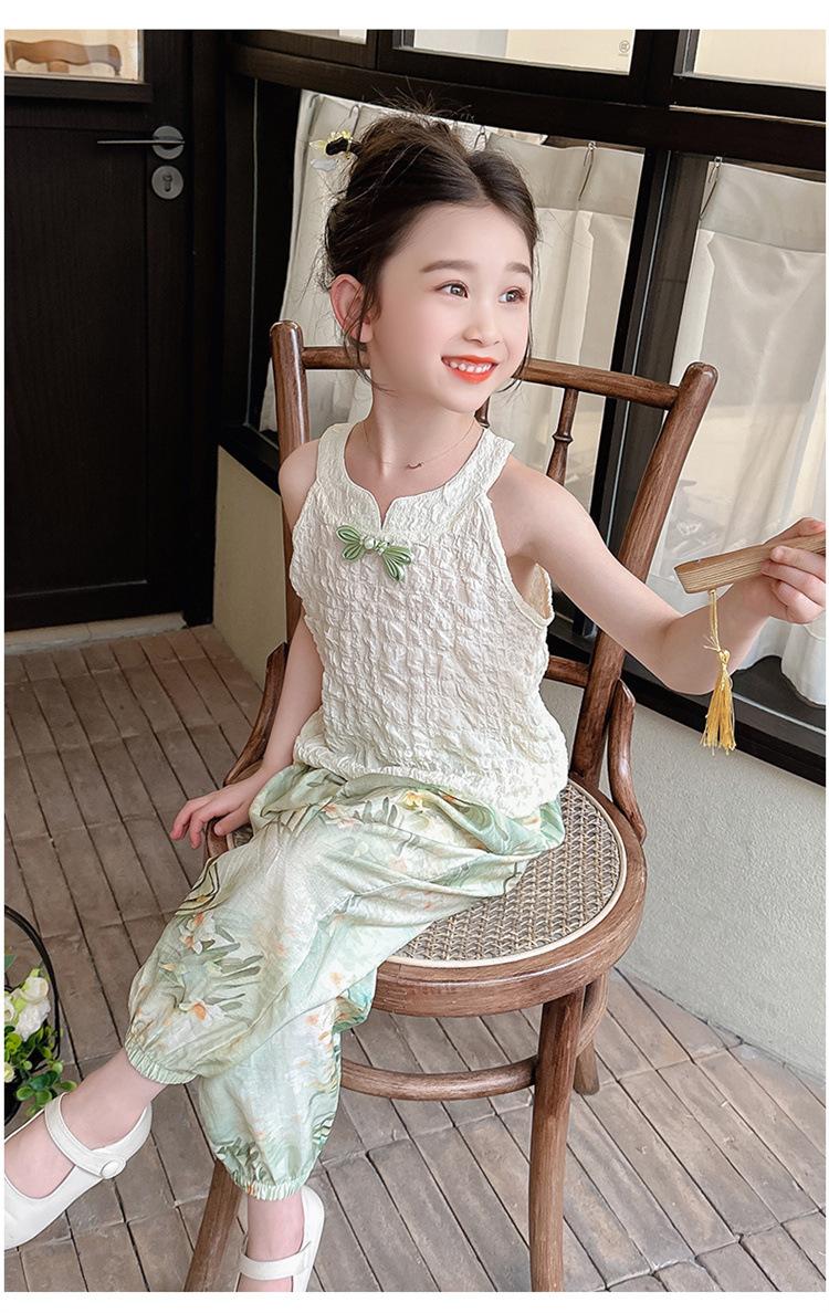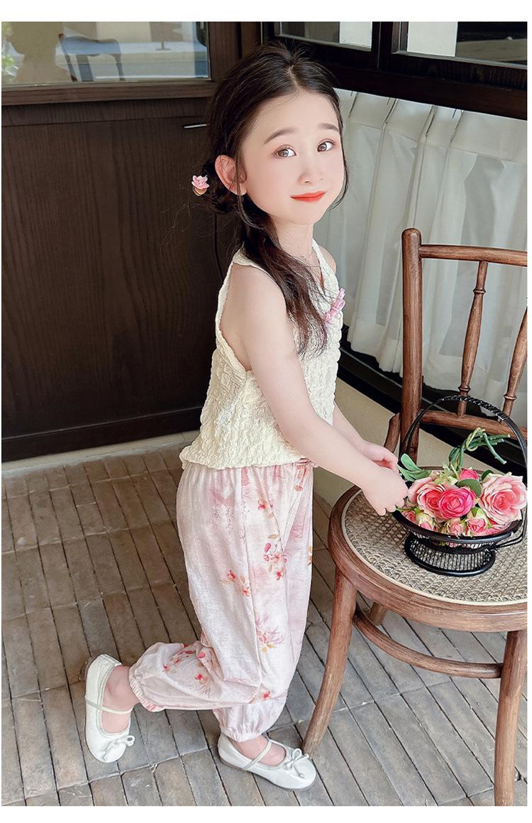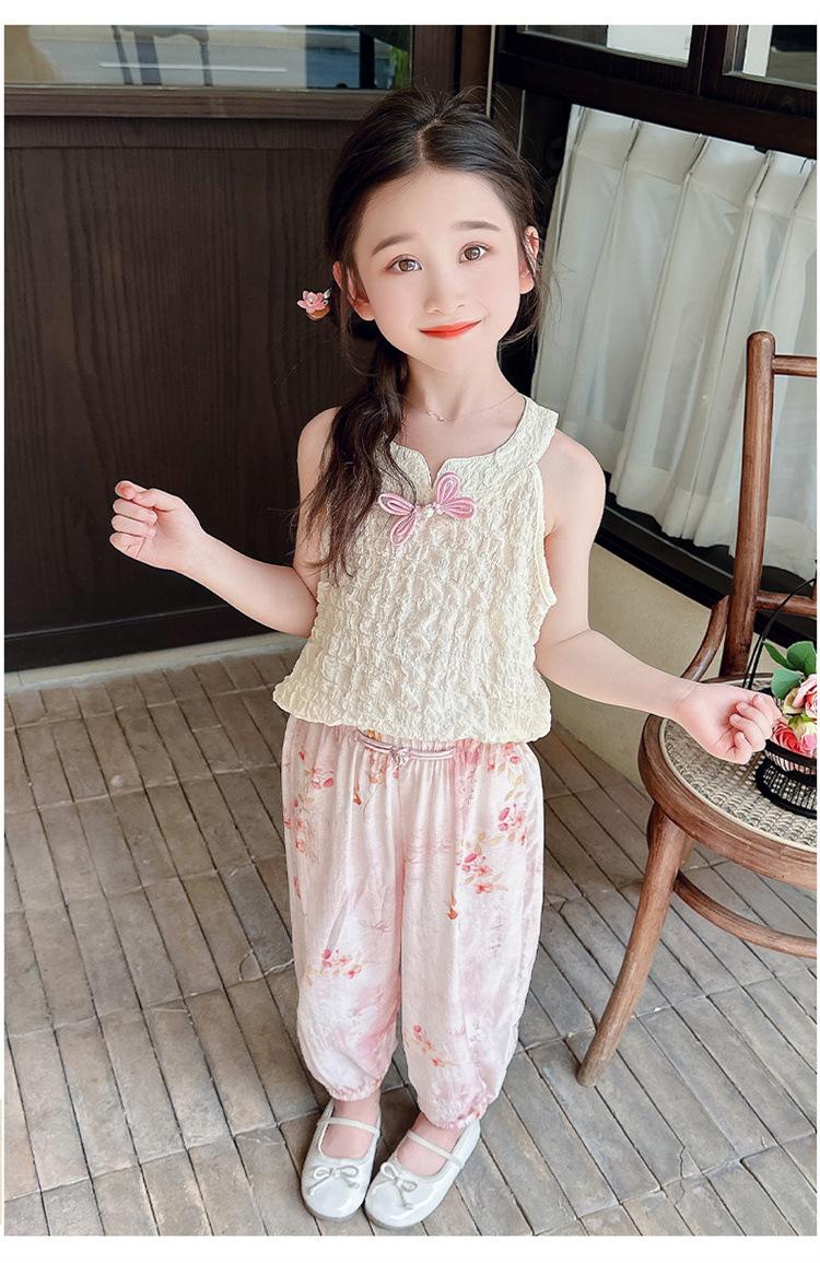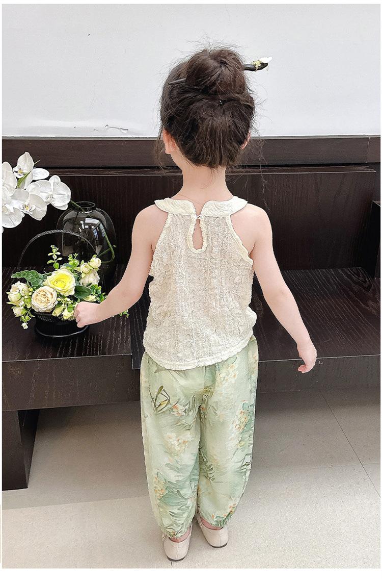 Traje Chaleco Halter para Niñas 2025 Nueva Moda Conjunto de Dos Piezas Moderno para Niña Ropa para Niños Pequeños y Medianos Tendencia de Ropa de Verano
