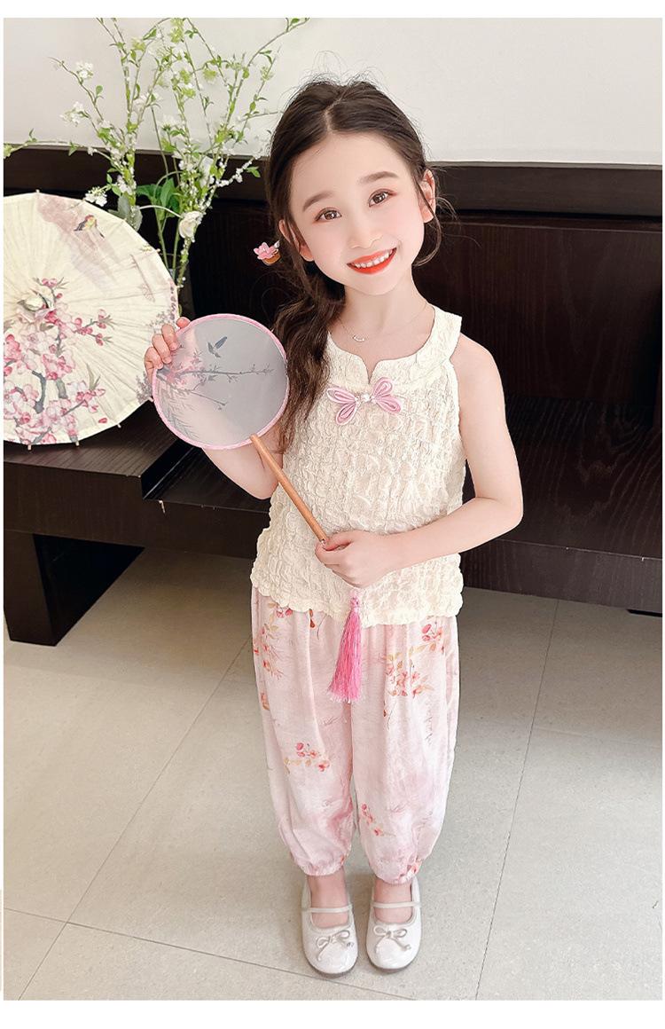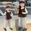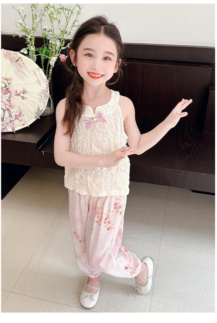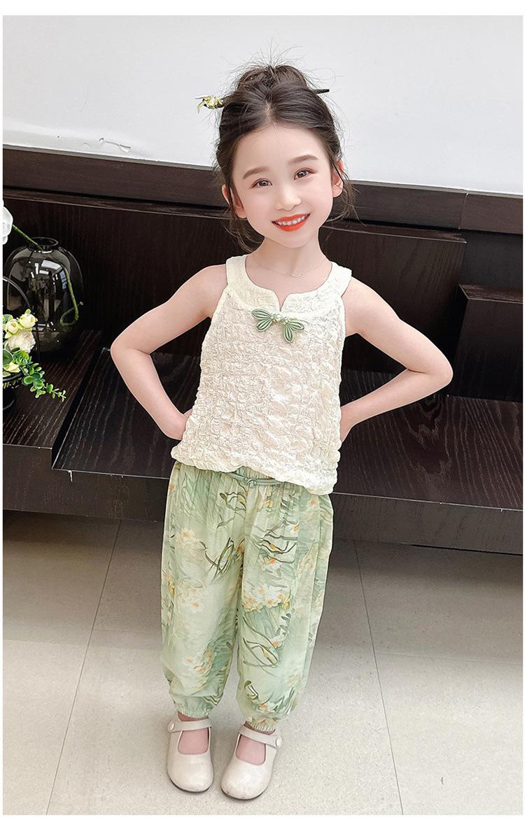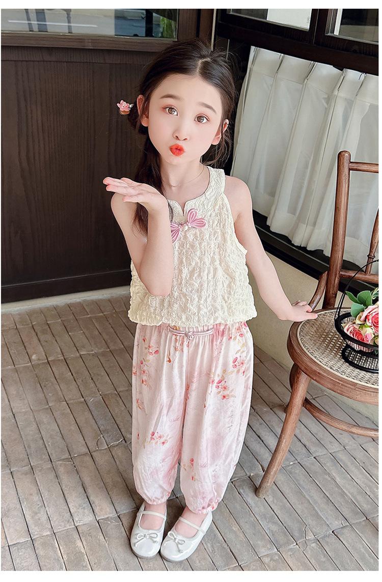 Traje Chaleco Halter para Niñas 2025 Nueva Moda Conjunto de Dos Piezas Moderno para Niña Ropa para Niños Pequeños y Medianos Tendencia de Ropa de Verano