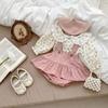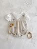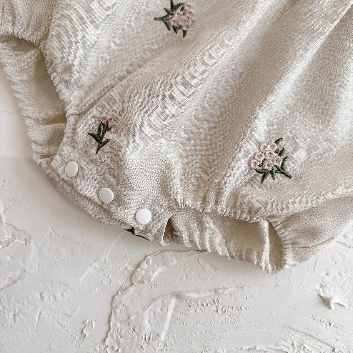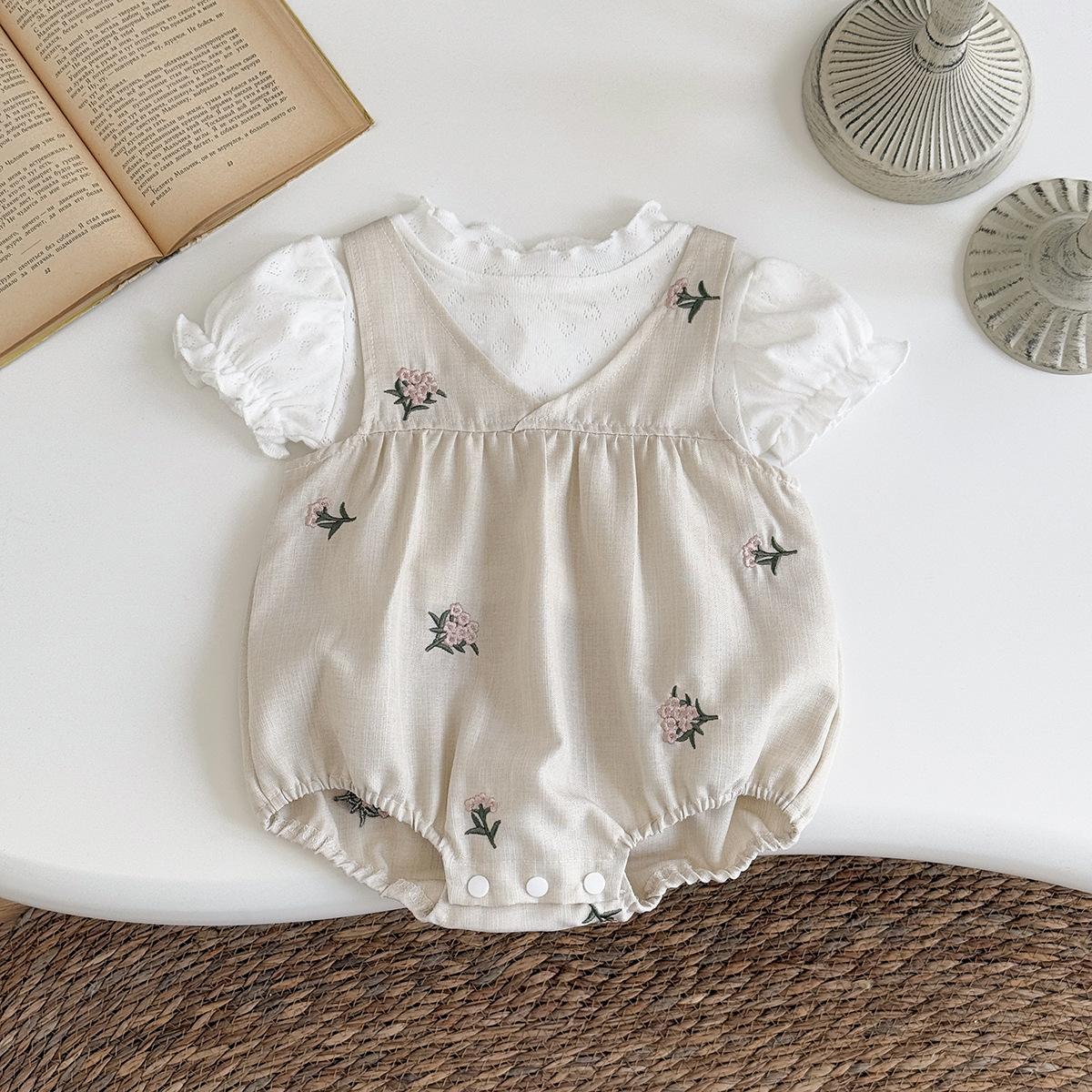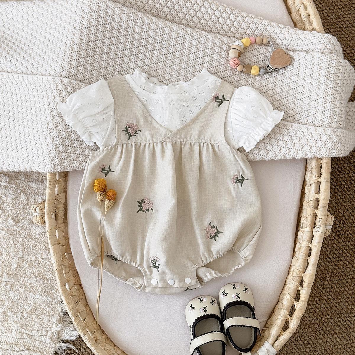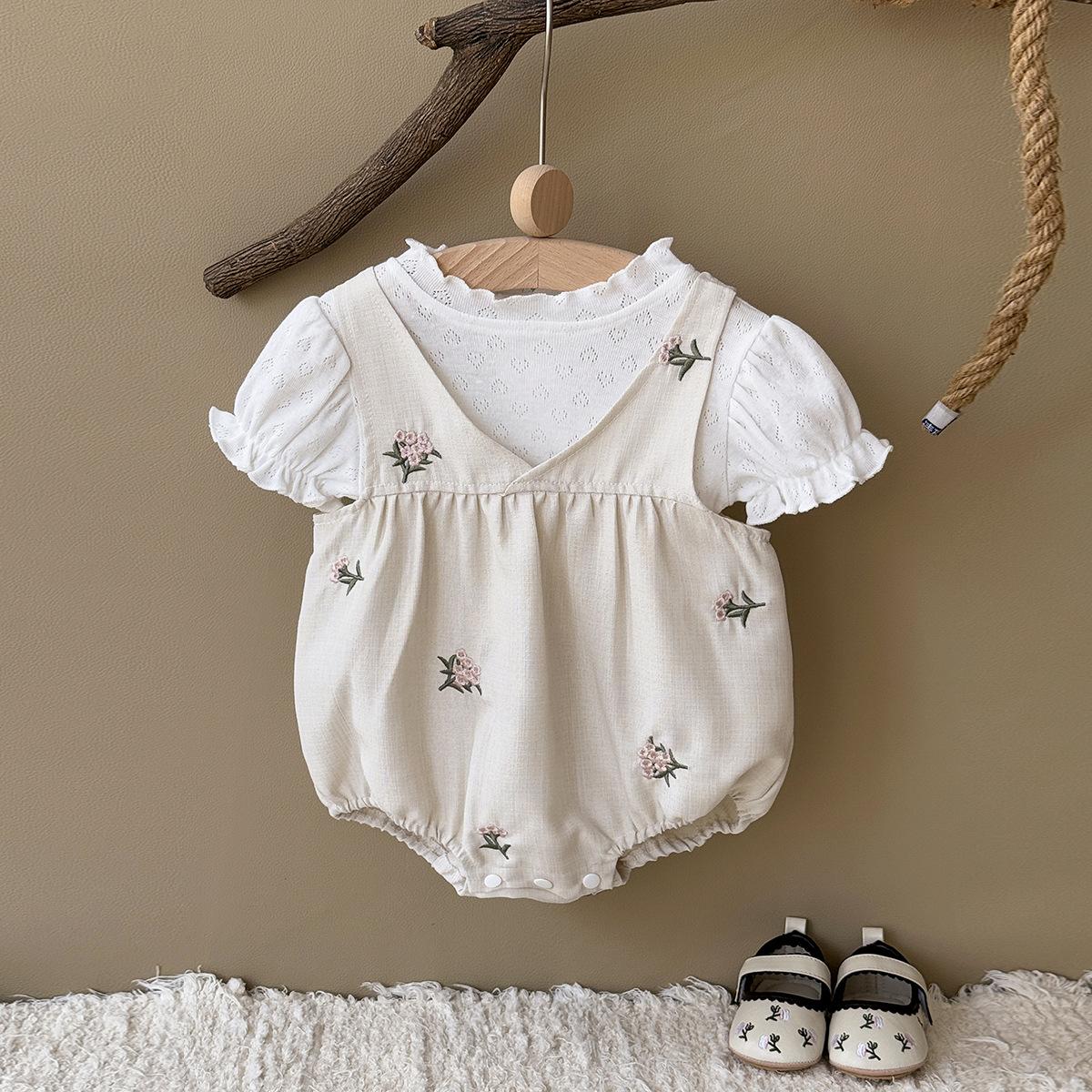 Verano Nuevo Bebé Niña Mameluco Floral Bordado Infantil Camiseta Manga Abullonada + Harem de Una Pieza Conjunto de Dos Piezas Lindo