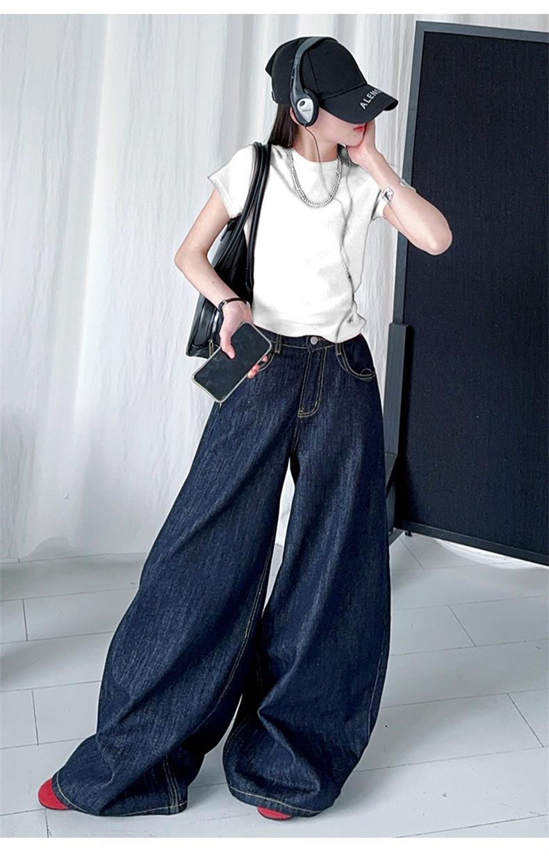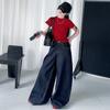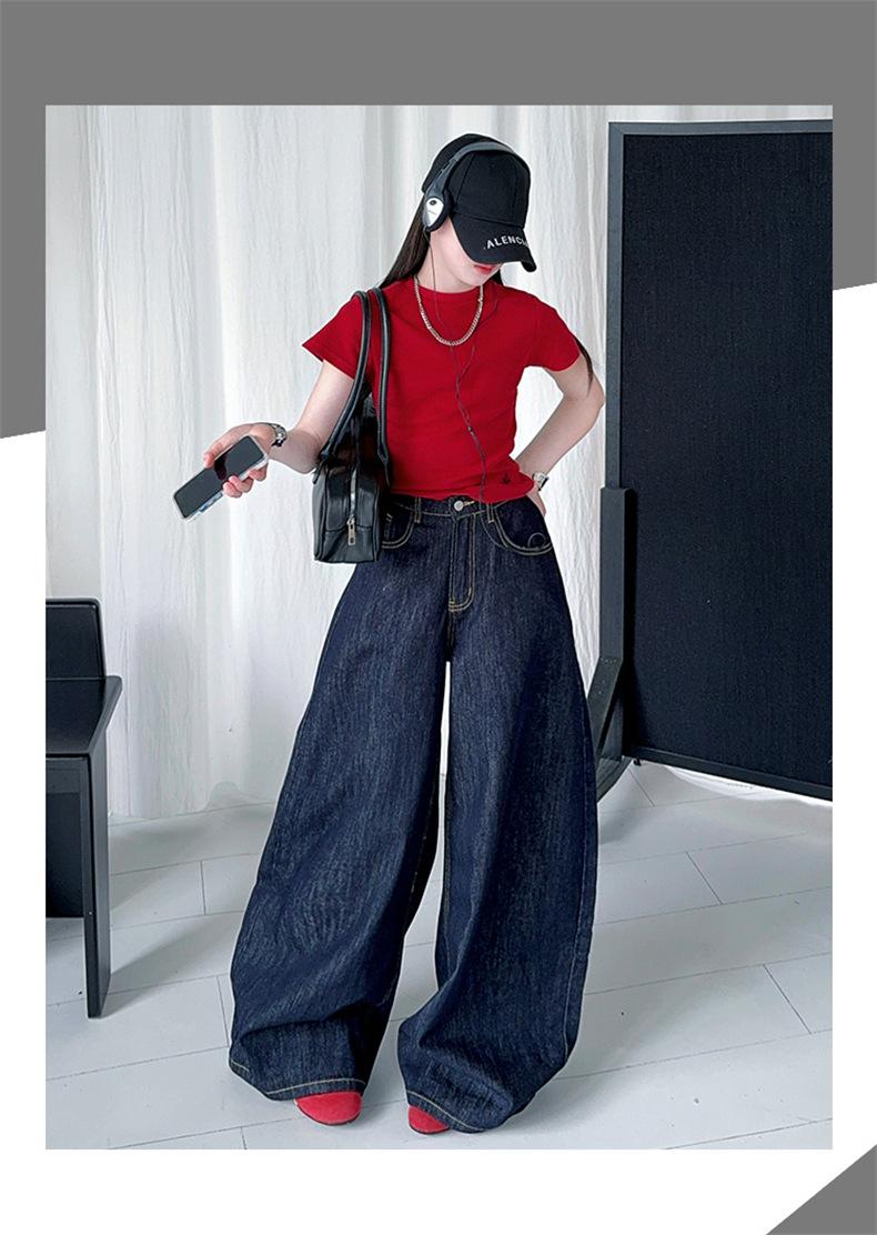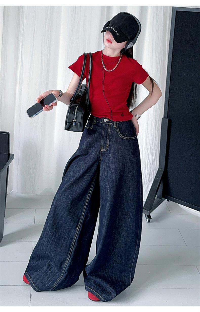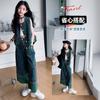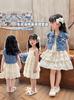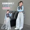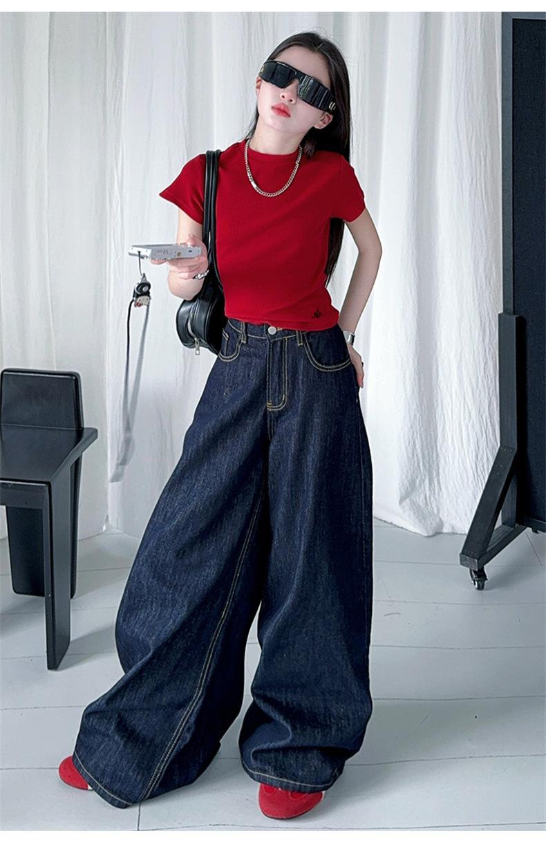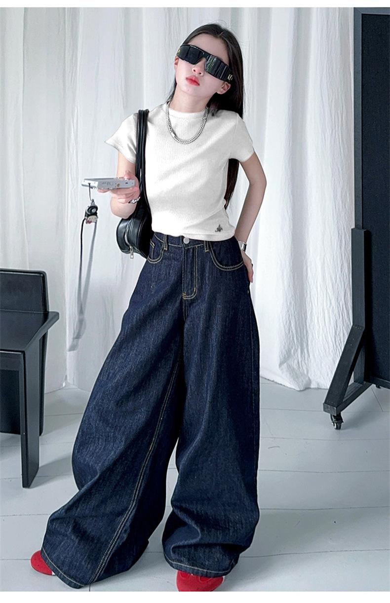 Traje de verano para niñas 2025 Moda para niñas Estilo coreano ZhongDa Niños Extranjero Color sólido Manga corta Conjunto de pantalones de mezclilla