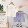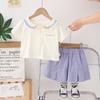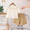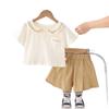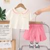 Traje de Verano para Niñas Nuevo Estilo Bebé Niña Estilo Verano Ropa Infantil Pesada a la Moda Set de Dos Piezas de Manga Corta con Cuello Marino