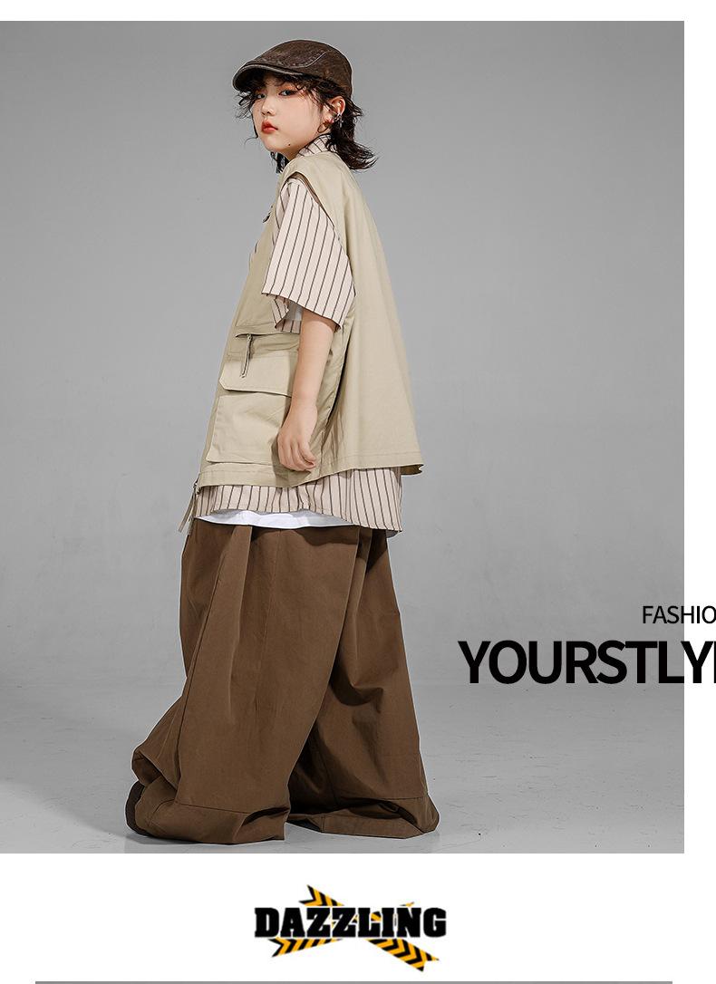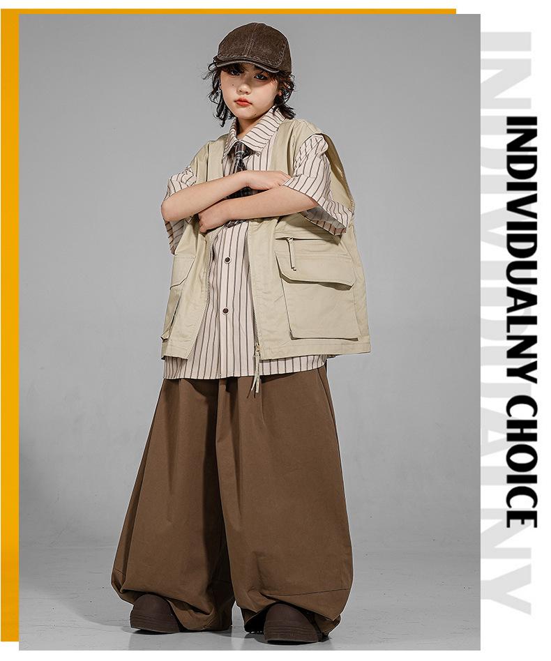 Ropa de Moda para Danza Urbana para Niños Chaleco de Hip-Hop para Niños Estilo Japonés Traje de Danza Urbana para Niñas Ropa de Actuación de Hip-Hop para Niños