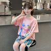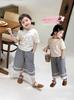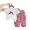 Pantalones a Cuadros de Verano con Lazo para Niñas Traje de Manga Corta 2025 Nuevo Estilo Moda Infantil para Bebés Conjunto de Dos Piezas Casual de Moda